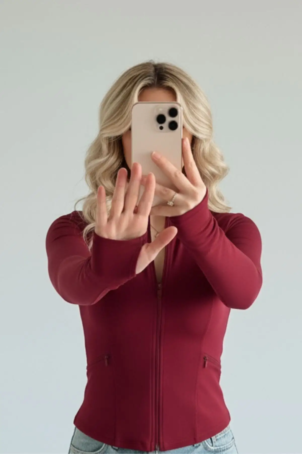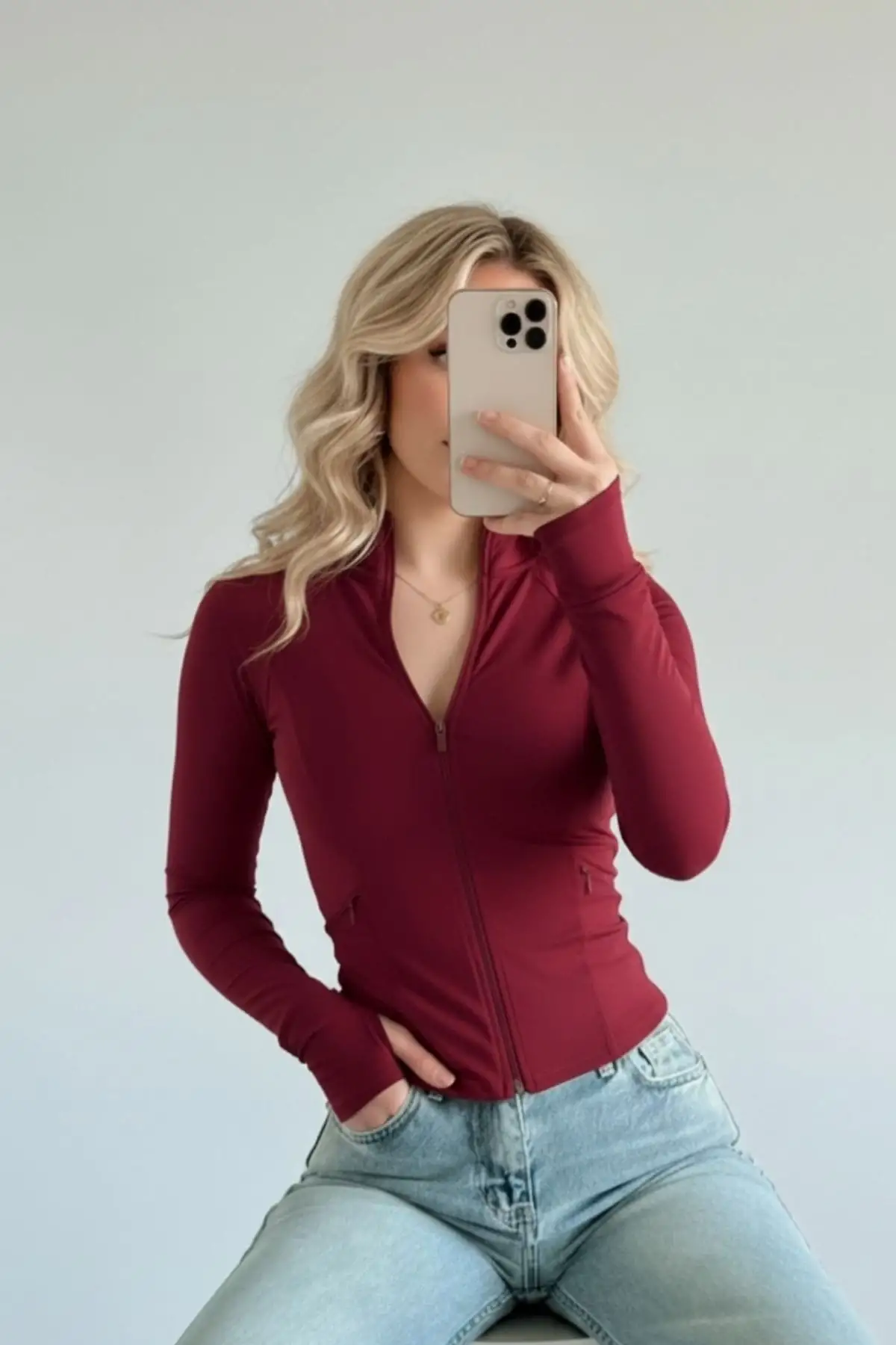 BORDO Rover Basic Slim Fit Fermuarlı Bluz