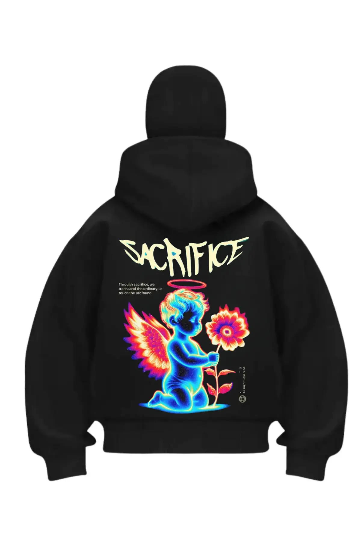Sacrifice Baskılı Siyah Samuray Kar Maske Sweatshirt Hırka