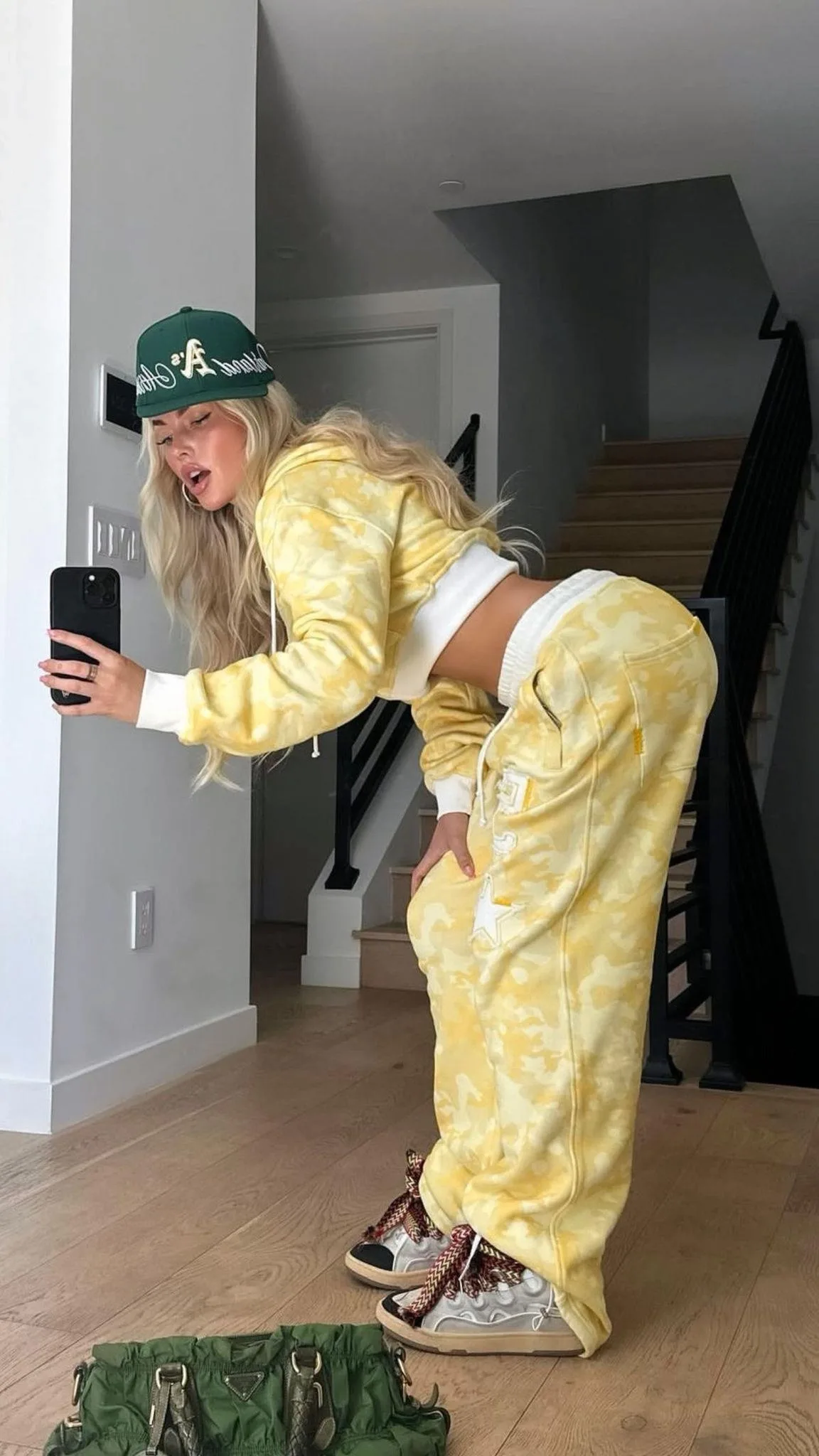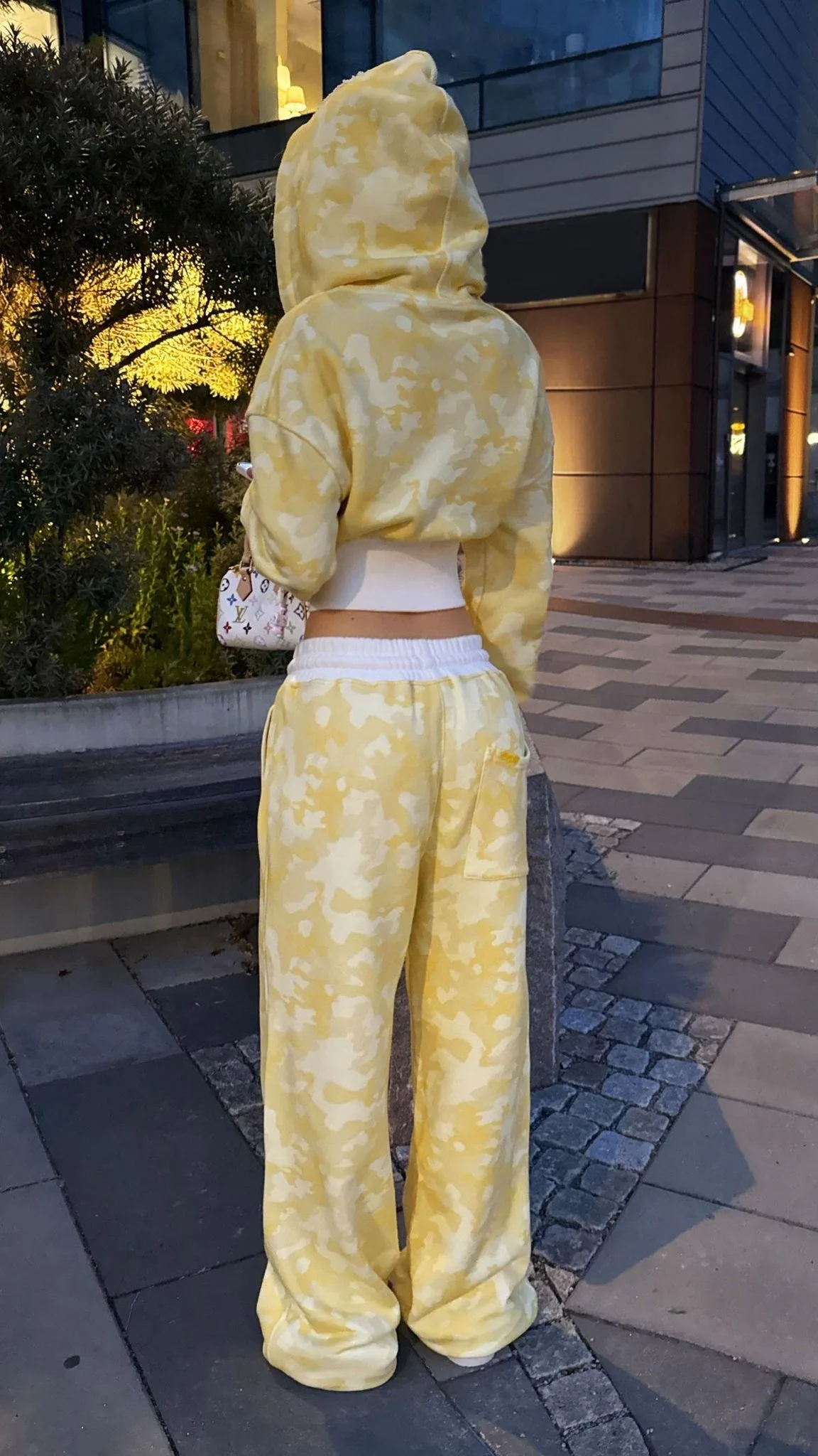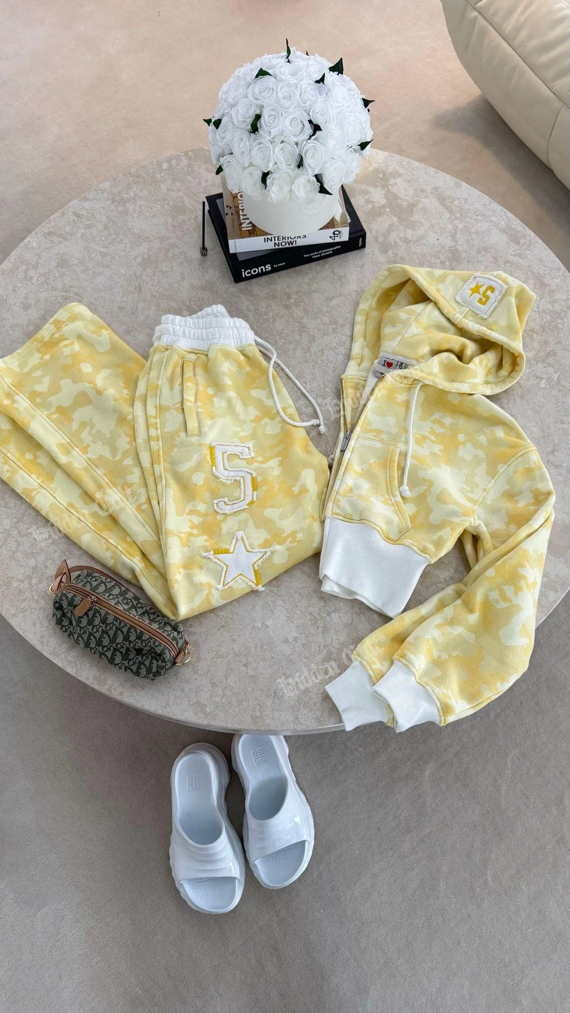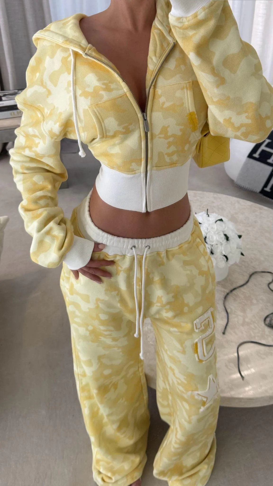 Sarı Restock Kamuflaj Baggy Alt Üst Eşofman Takımı ( 3 İplik Şardonlu)