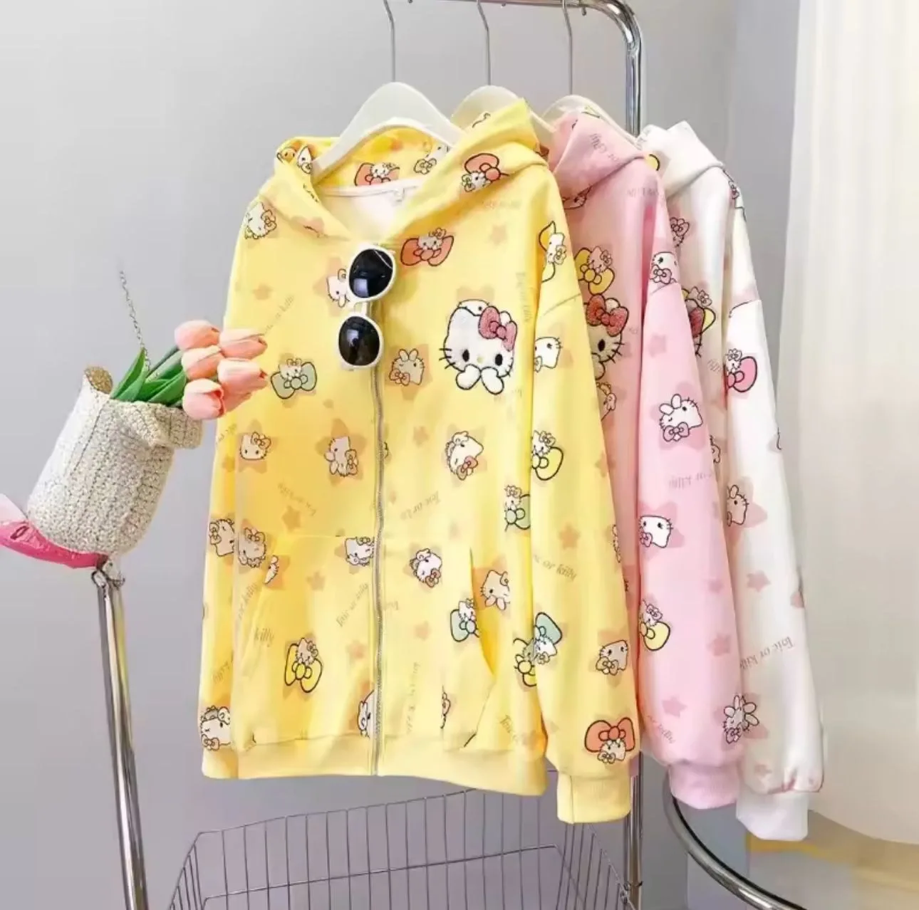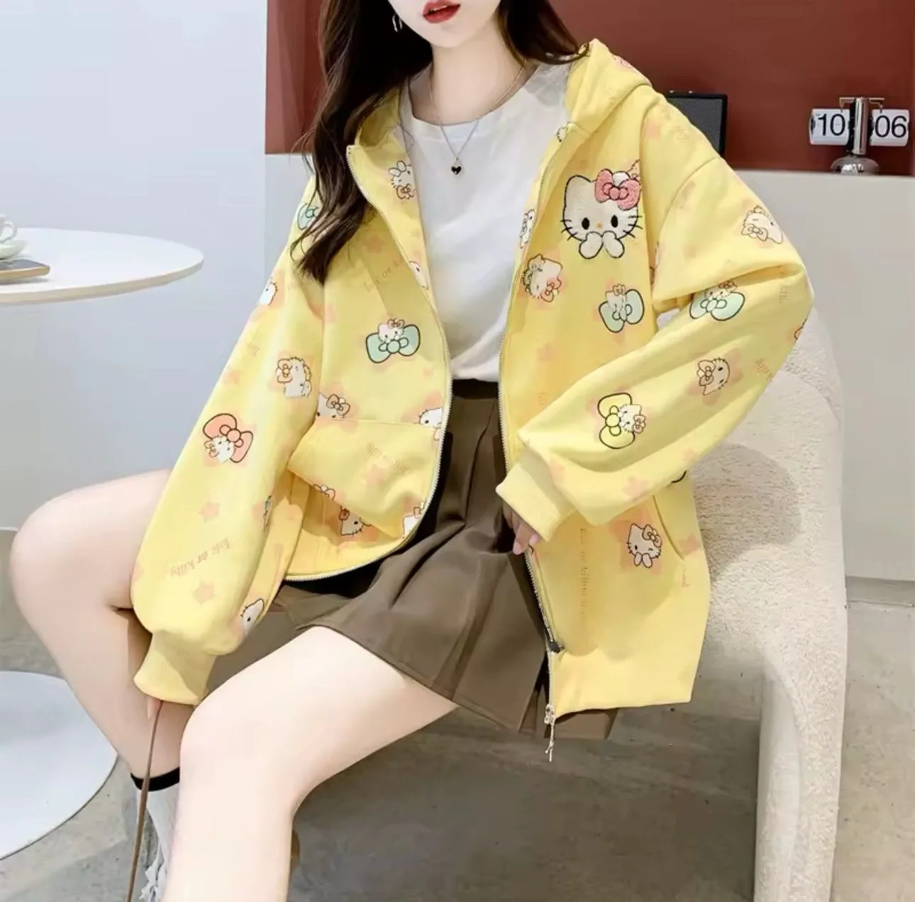 Sarı Sanrio Anime Kawaii Hello Kitty Detaylı Hırka
