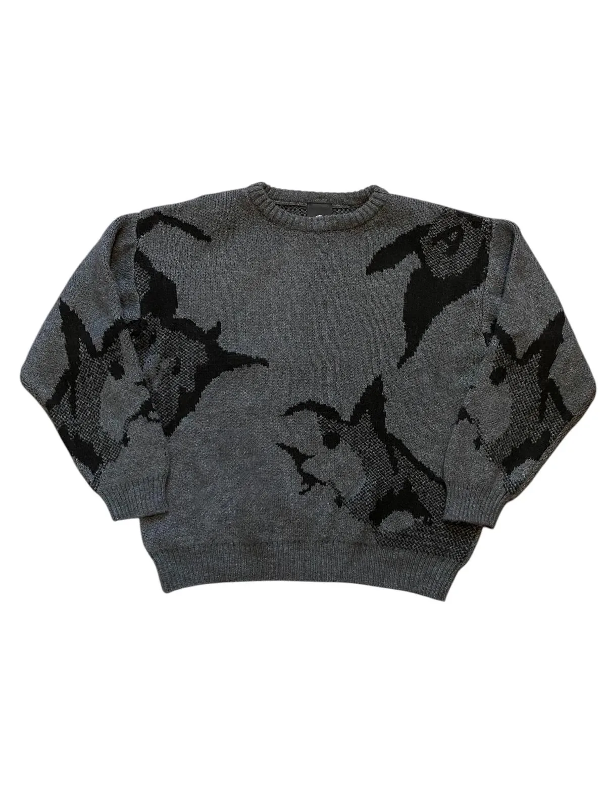 Koyu Gri Yıkamalı Wash Göz Nakışlı Oversize Premium Sweatshirt