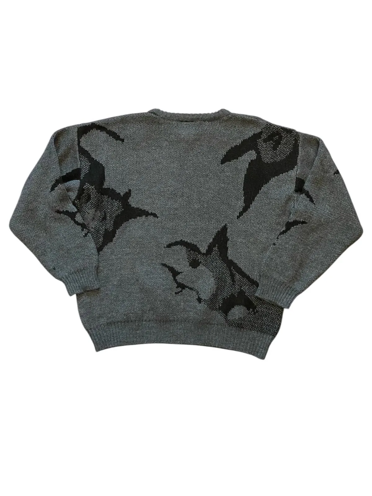 Minimal Nakışlı Siyah Bisiklet Yaka Kazak
