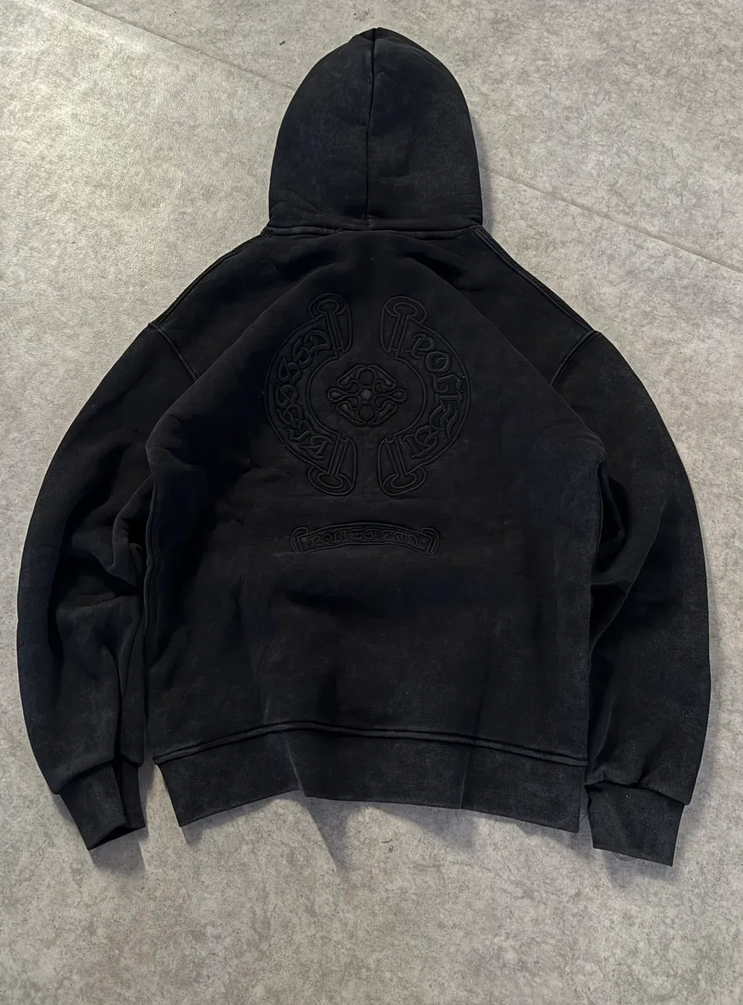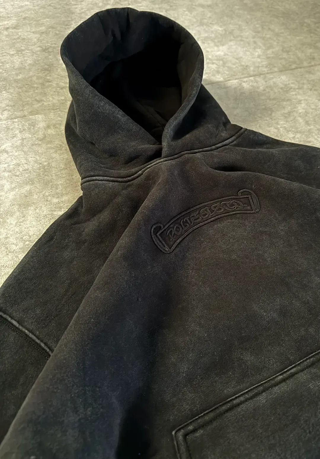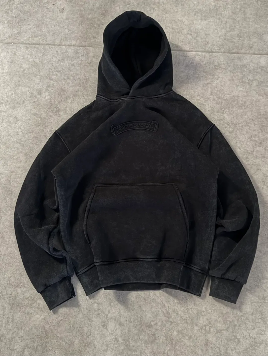 Siyah Acid Wash Aplike Nakışlı Oversize Premium Sweatshirt