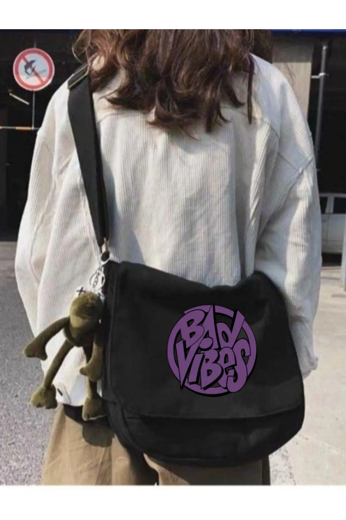 Siyah Bad Vibes Desenli Unisex Askılı Postacı Çanta