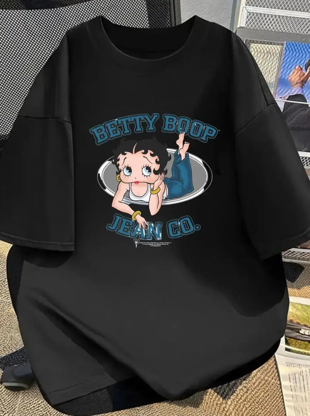 Siyah Betty Boop Baskılı Unisex Oversize T-shirt