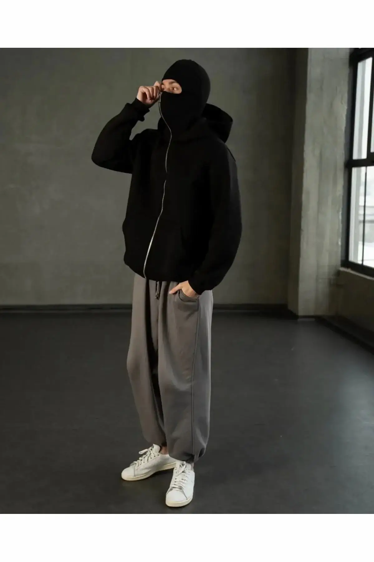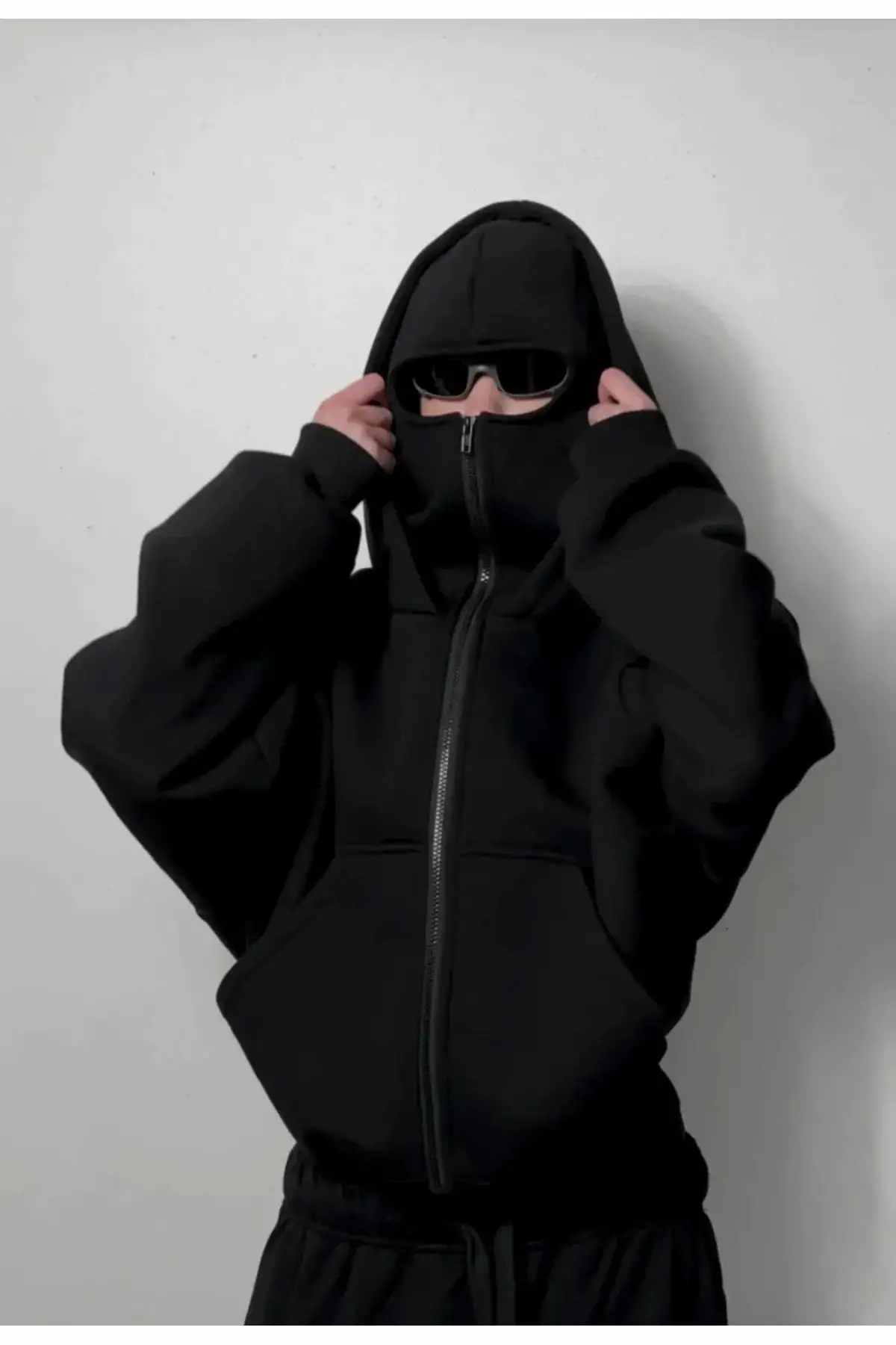 SiyahBlood Script Baskılı Kar Maskeli Unisex Sweatshirt Hırka