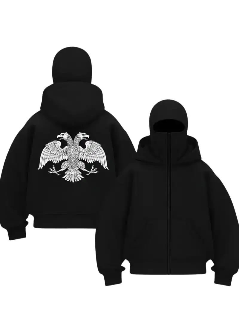 Siyah Çift Başlı Kartal Baskılı Kar Maskeli Unisex Sweatshirt Hırka