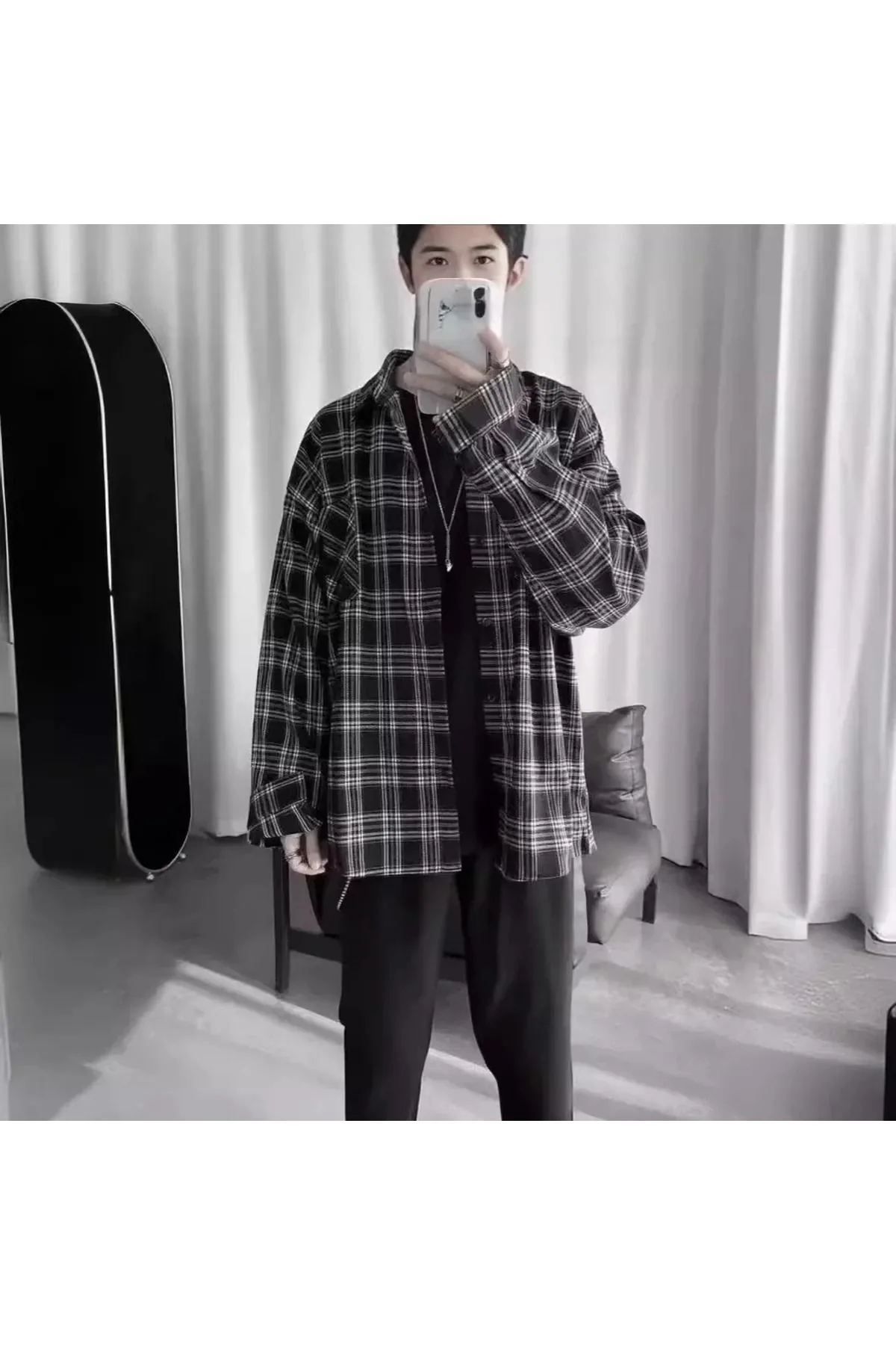 Siyah Çizgili Beyaz Oversize Kalıp Oduncu Gömlek