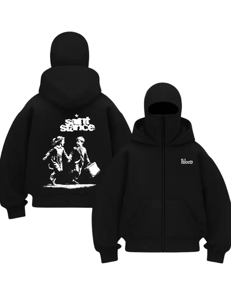 Siyah Dark Urban Saints Baskılı Kar Maskeli Unisex Sweatshirt Hırka