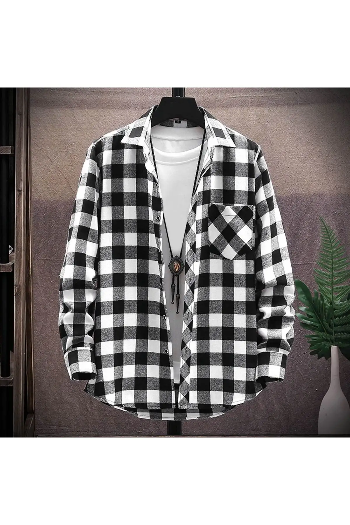 Siyah Ekoseli Beyaz Oversize Kalıp Oduncu Gömlek