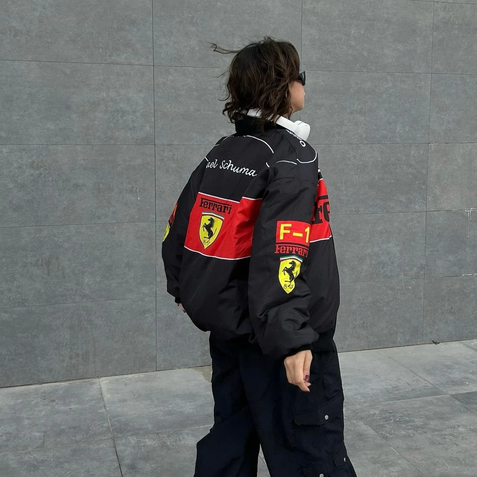 Siyah F1 Ferrari Racing Retro Unisex Bomber Ceket