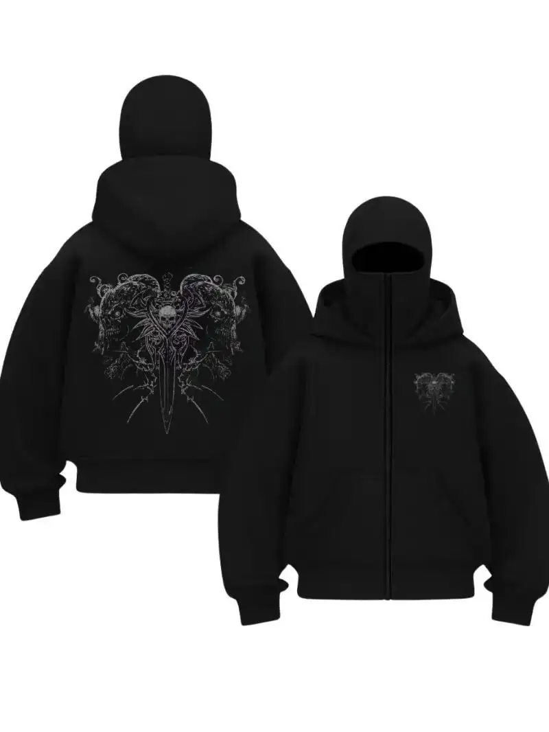 Siyah Gothic Warrior Baskılı Kar Maskeli Unisex Sweatshirt Hırka