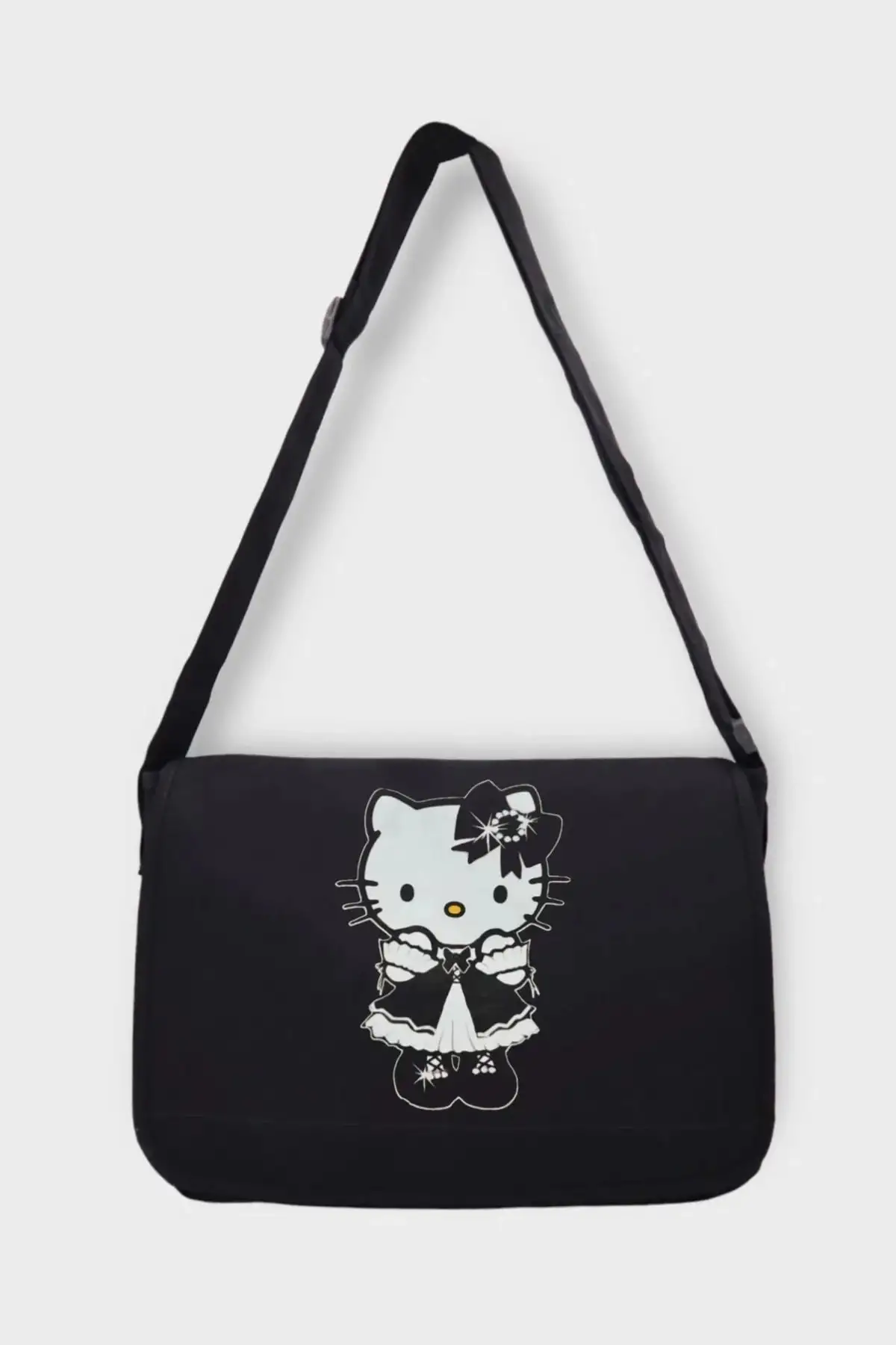 Siyah Hello Kitty Baskılı Postacı Çantası