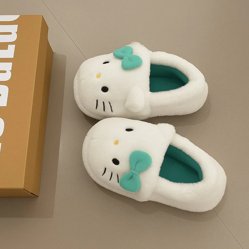 Turkuaz Hello Kitty Yumuşak Tüylü Peluş Panduf Terlik