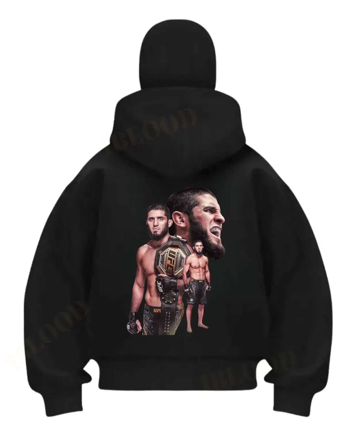 Siyah Islam Makhachev Baskılı Kar Maskeli Unisex Sweatshirt Hırka