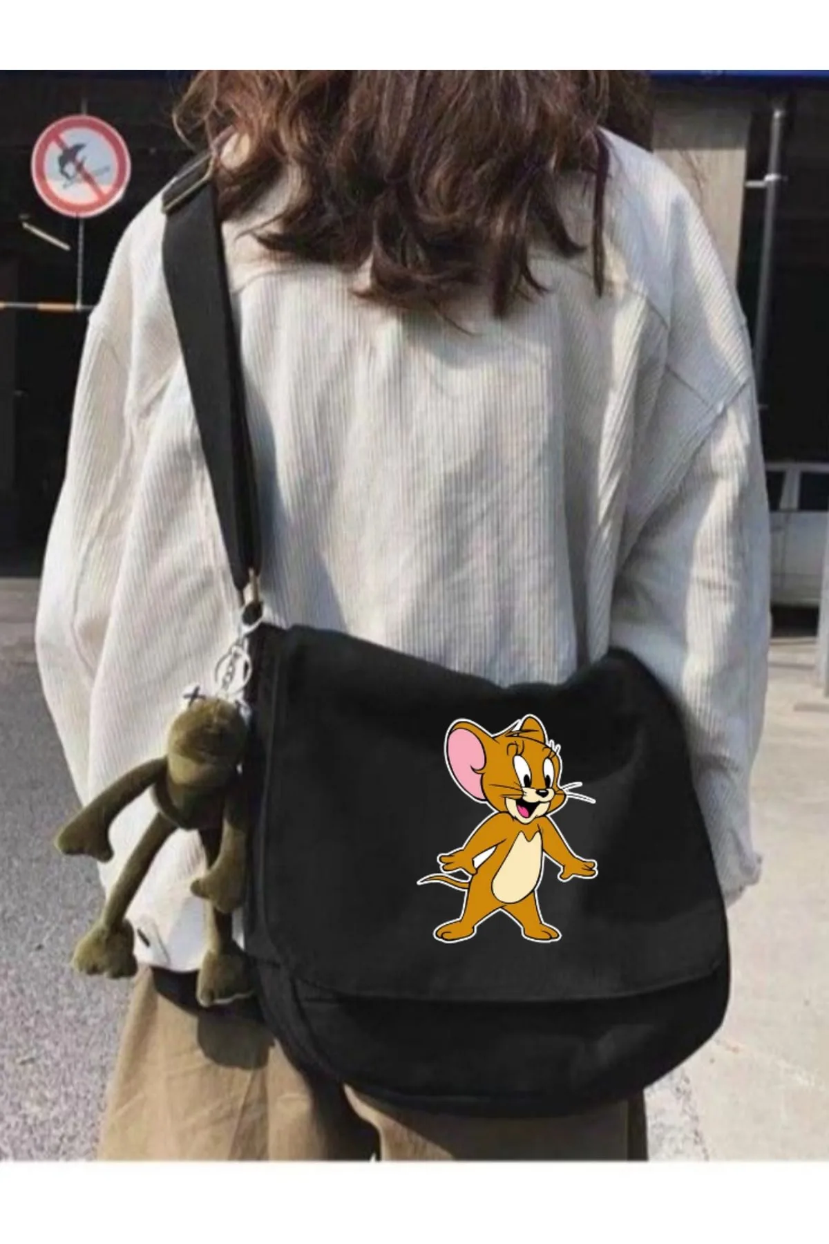Siyah Jerry Baskılı Unisex Askılı Postacı Çanta