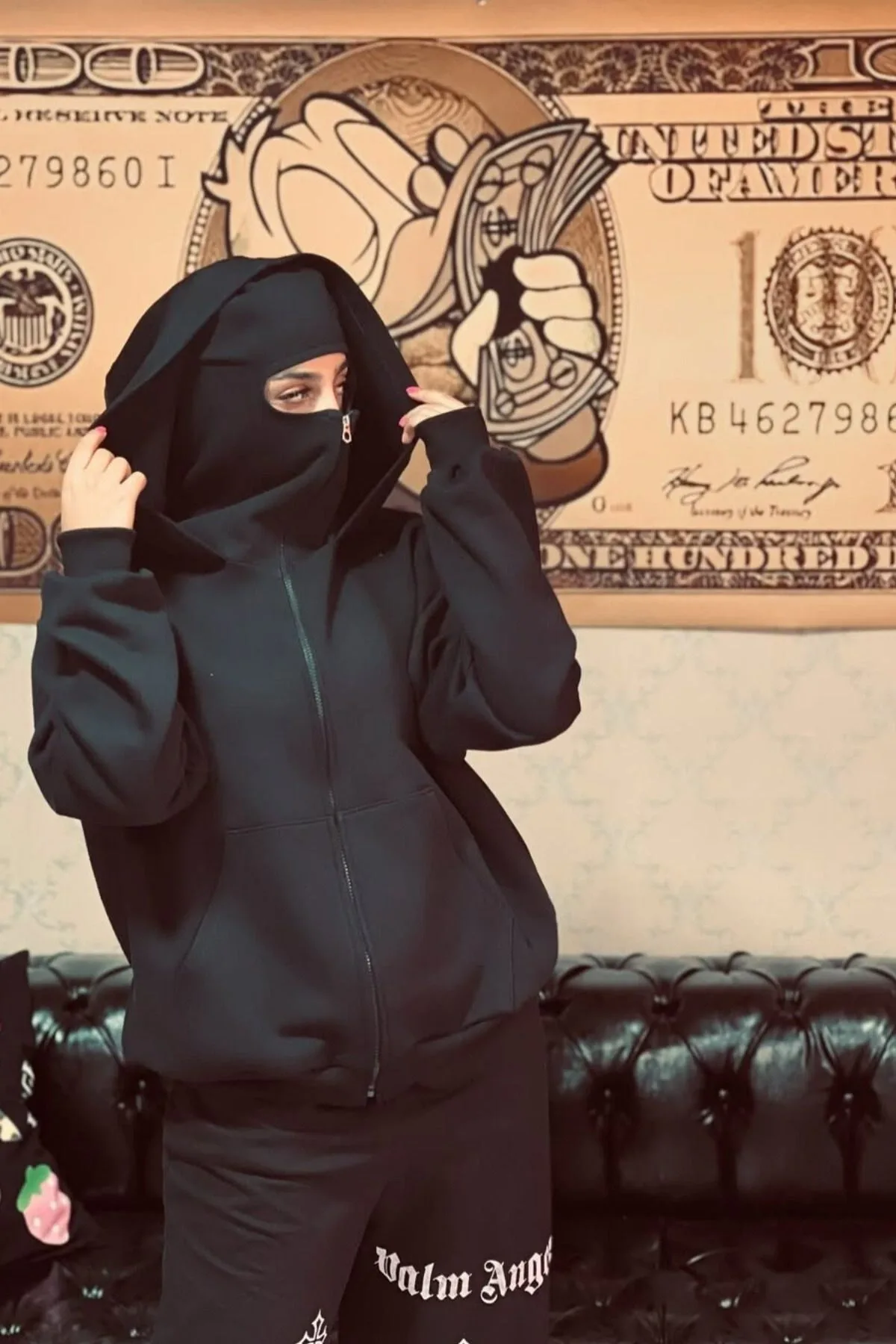 Siyah Kar Maskeli Samuray Kapüşonlu Sweatshirt