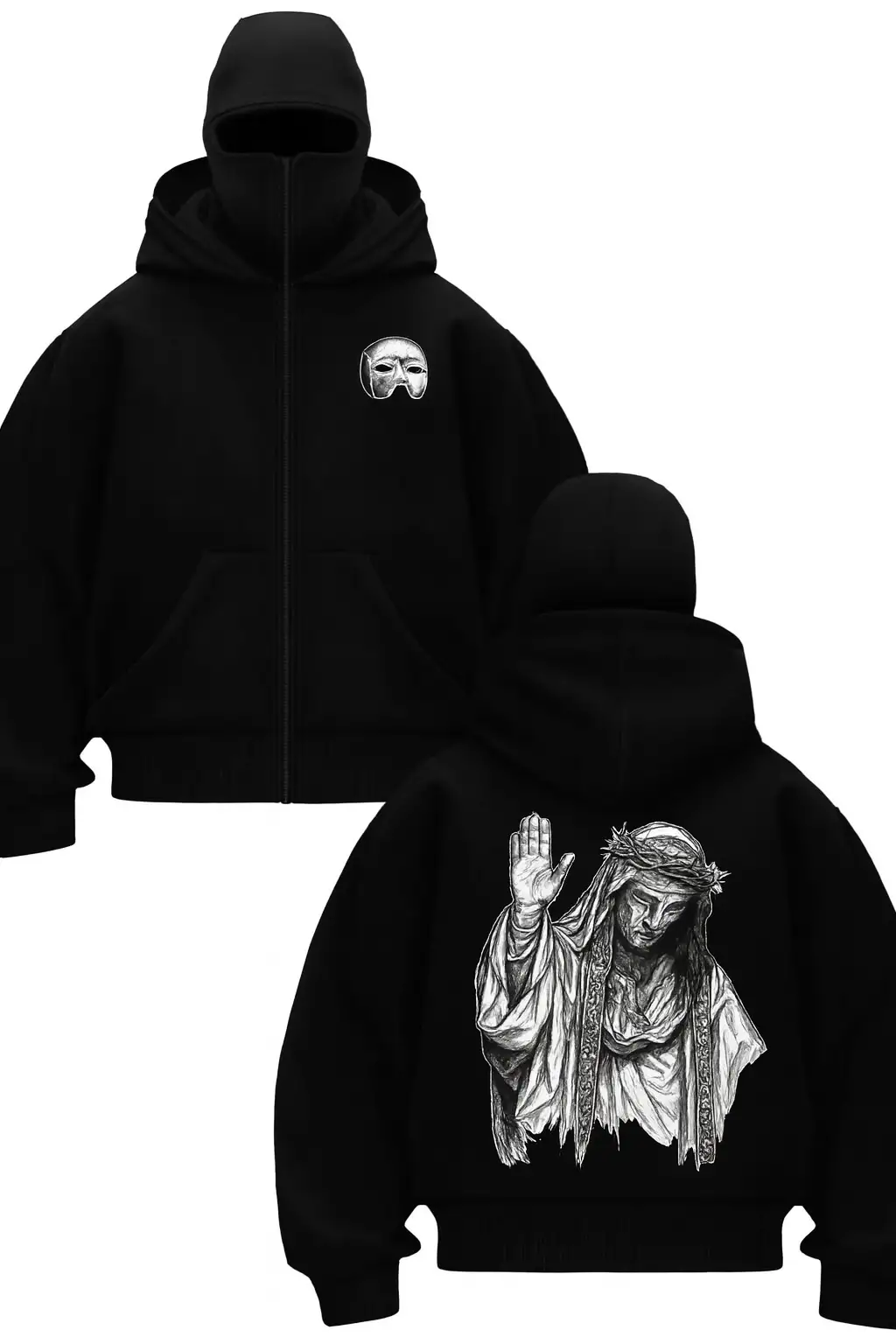 Siyah Maskeli Unisex King Baldwin Kapüşonlu Hırka
