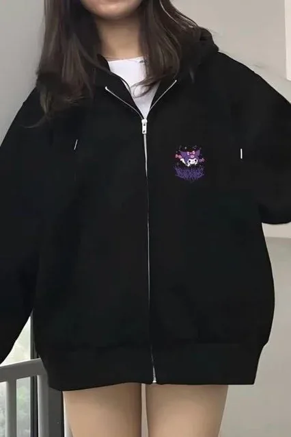 Siyah Mini Harajuku Anime Kuromi Unisex Fermuarlı Hırka