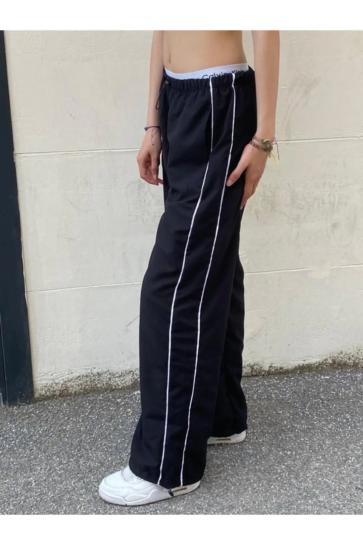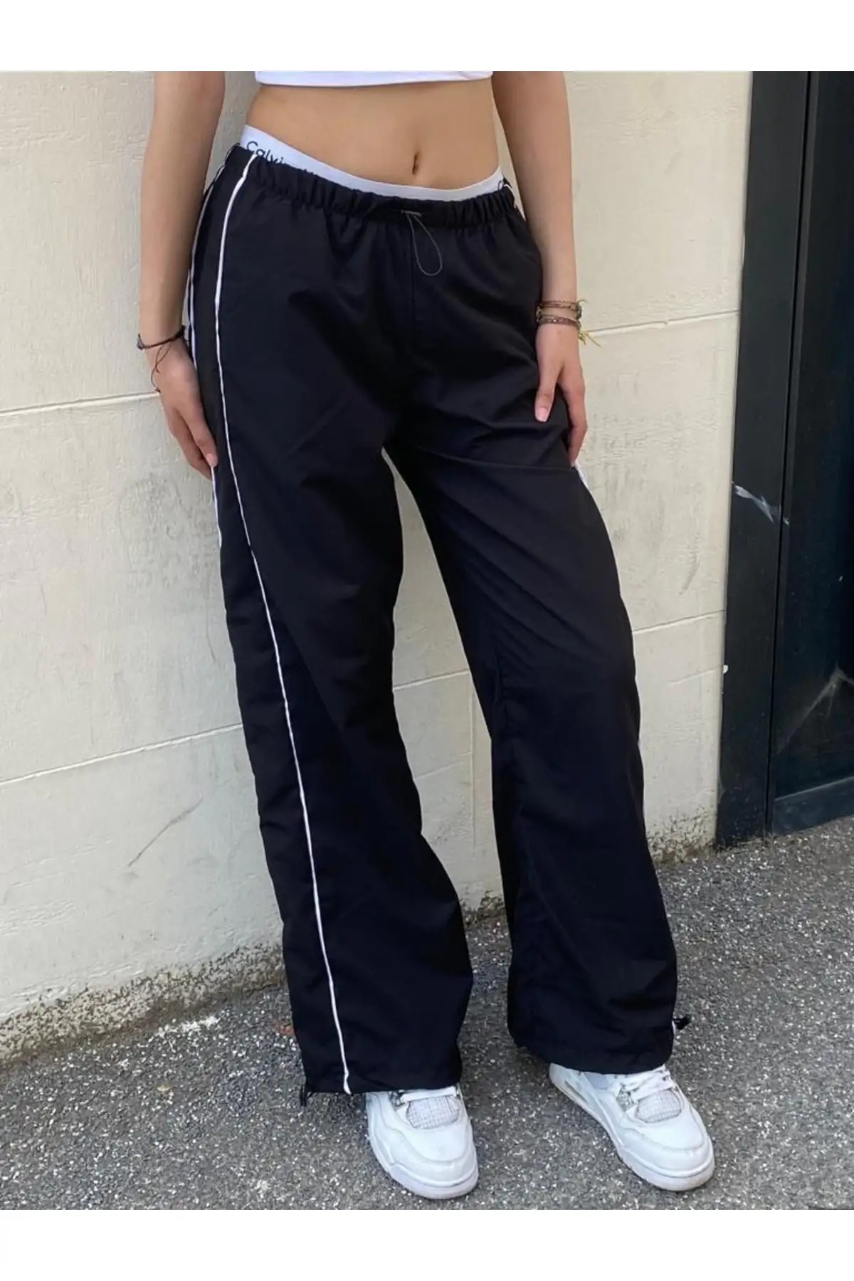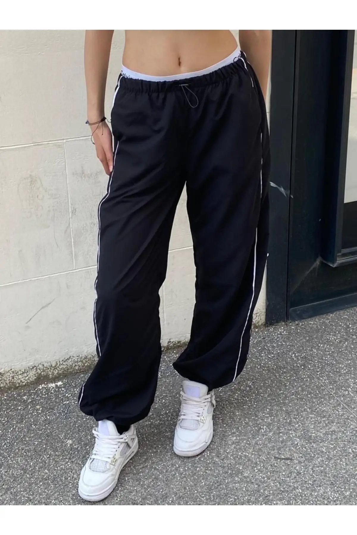 Siyah Şerit Detay Cepli Paraşüt Kumaş Baggy Eşofman
