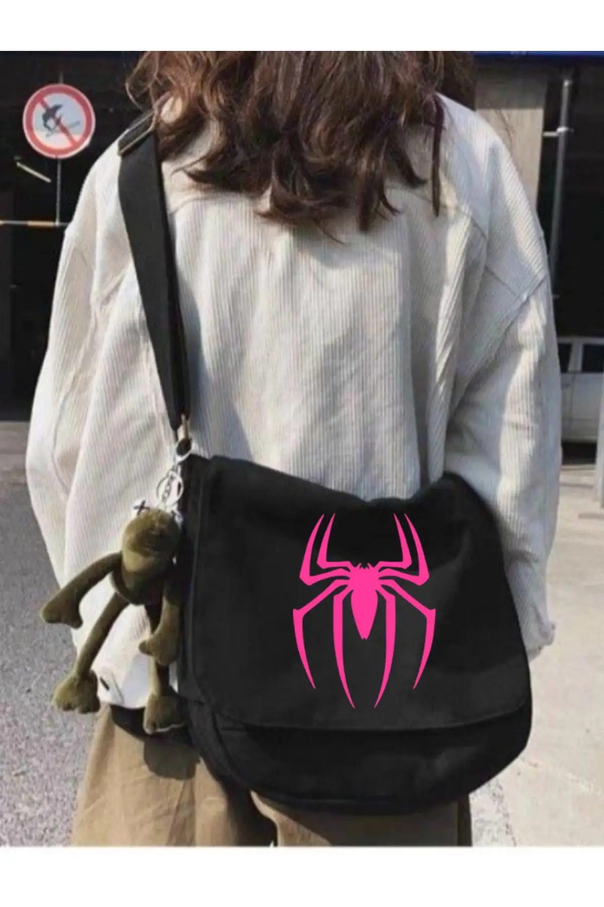 Siyah Pembe Örümcek Spiderman Baskılı Unisex Askılı Postacı Çanta