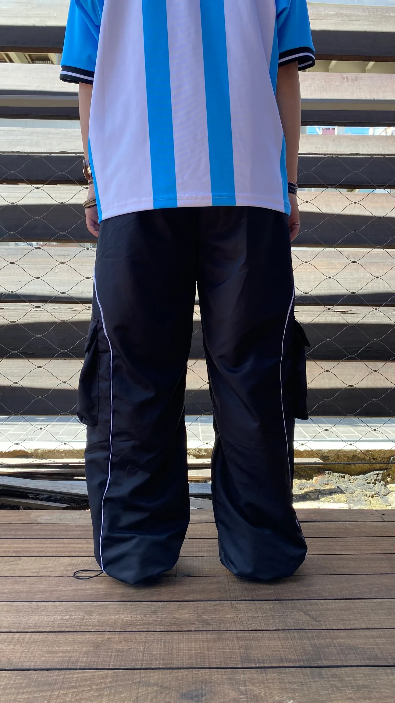 Siyah Şerit Detay Cepli Paraşüt Kumaş Baggy Eşofman