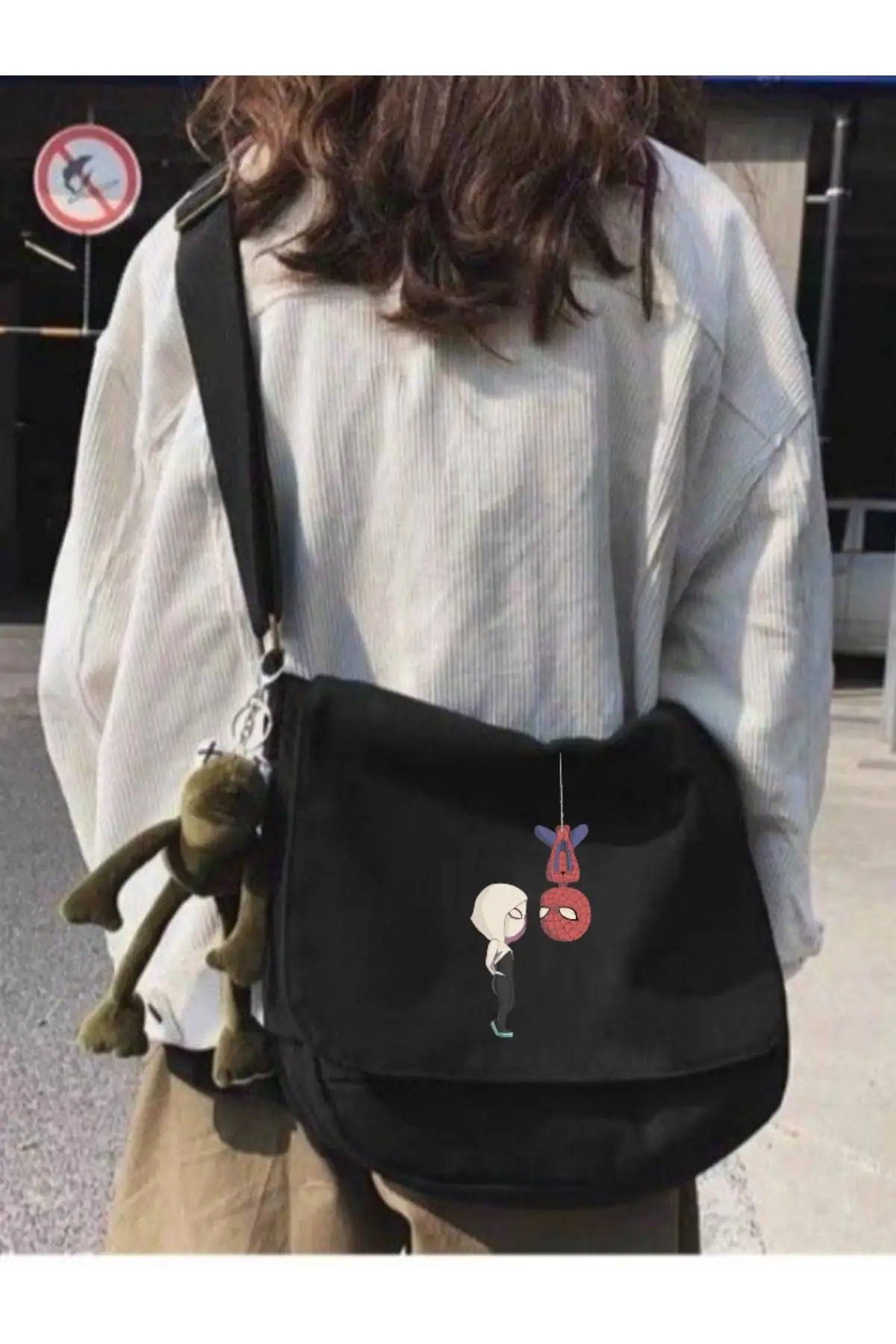 Siyah Ters Spiderman Love Baskılı Unisex Askılı Postacı Çanta
