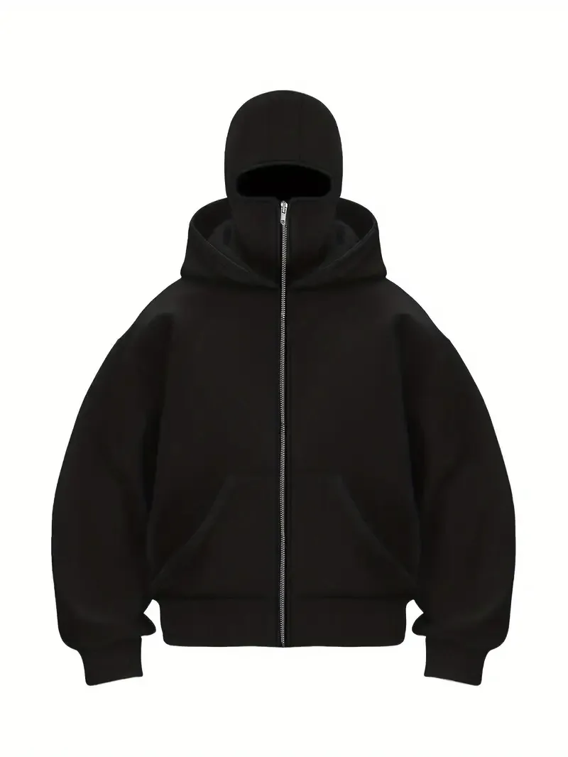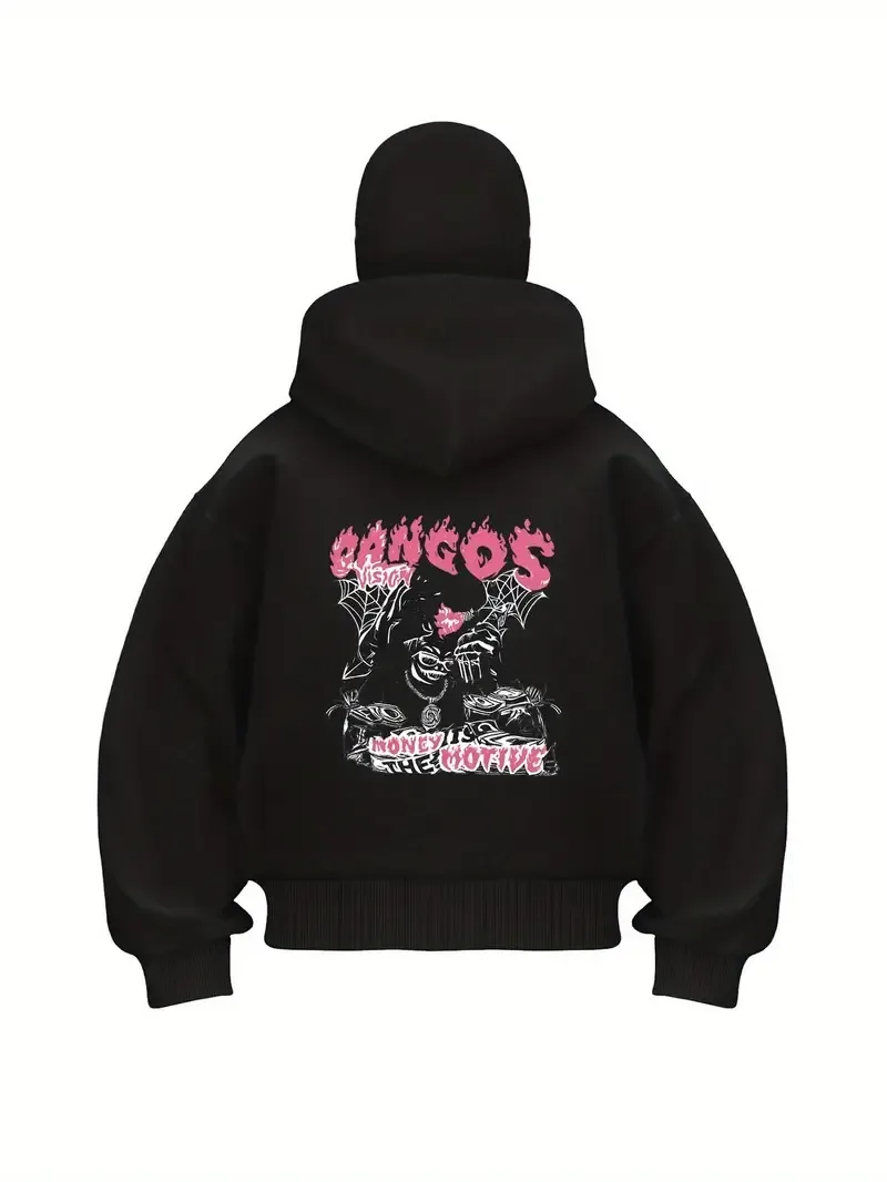 Unisex Oversize Siyah Gangos Money Motive Baskılı Maskeli Hoodie