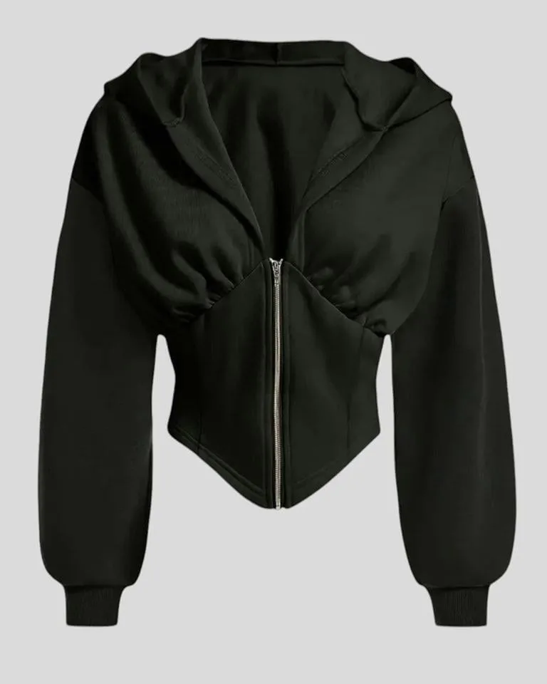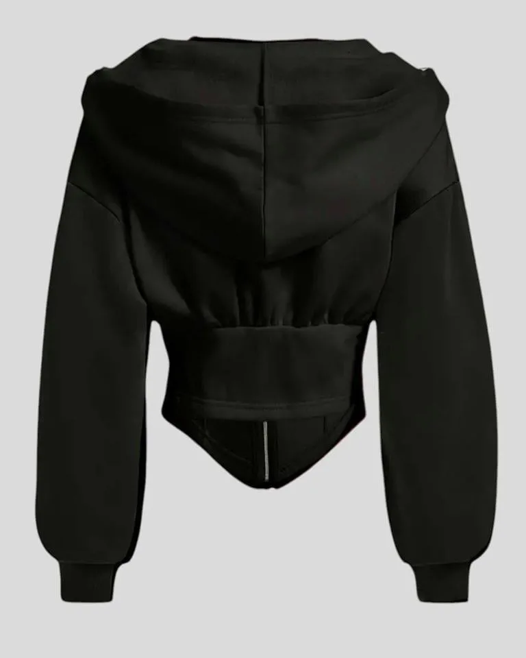Siyah Uzun Kollu Korse Kesim Fermuarlı Ceket