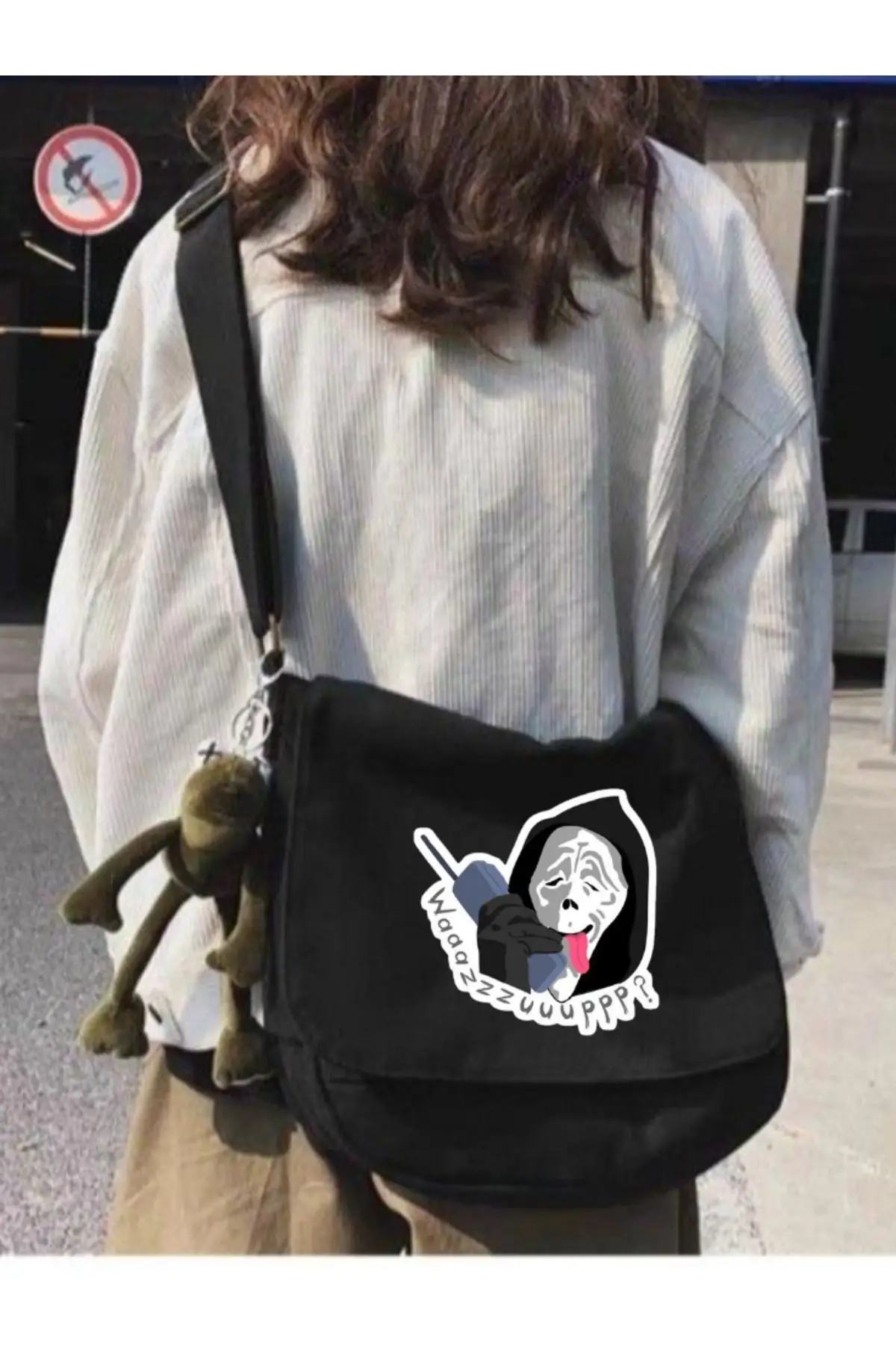 Siyah Waazzzuupp Baskılı Unisex Askılı Postacı Çanta