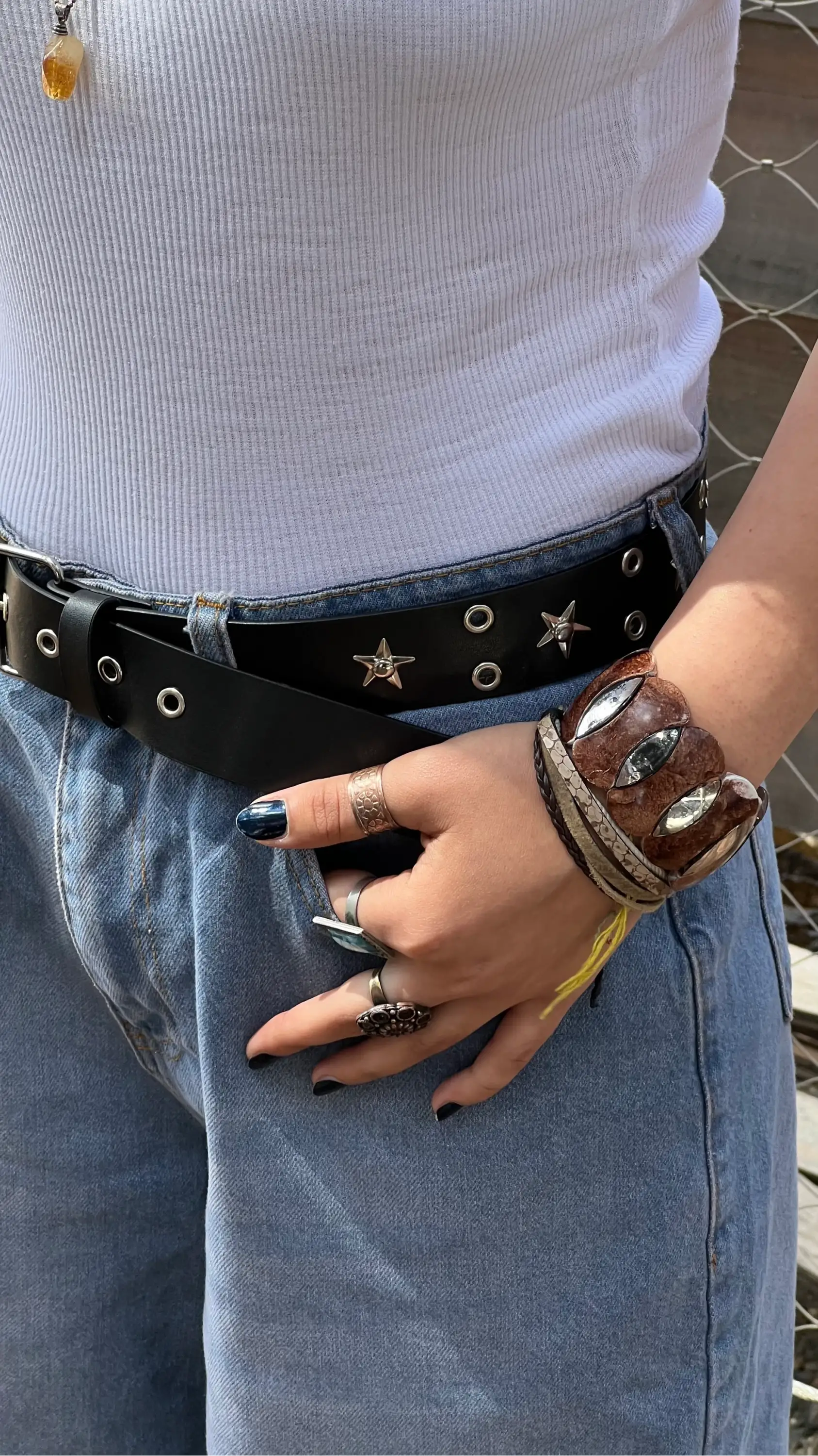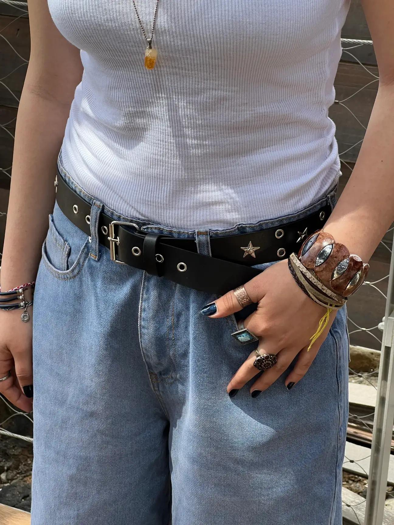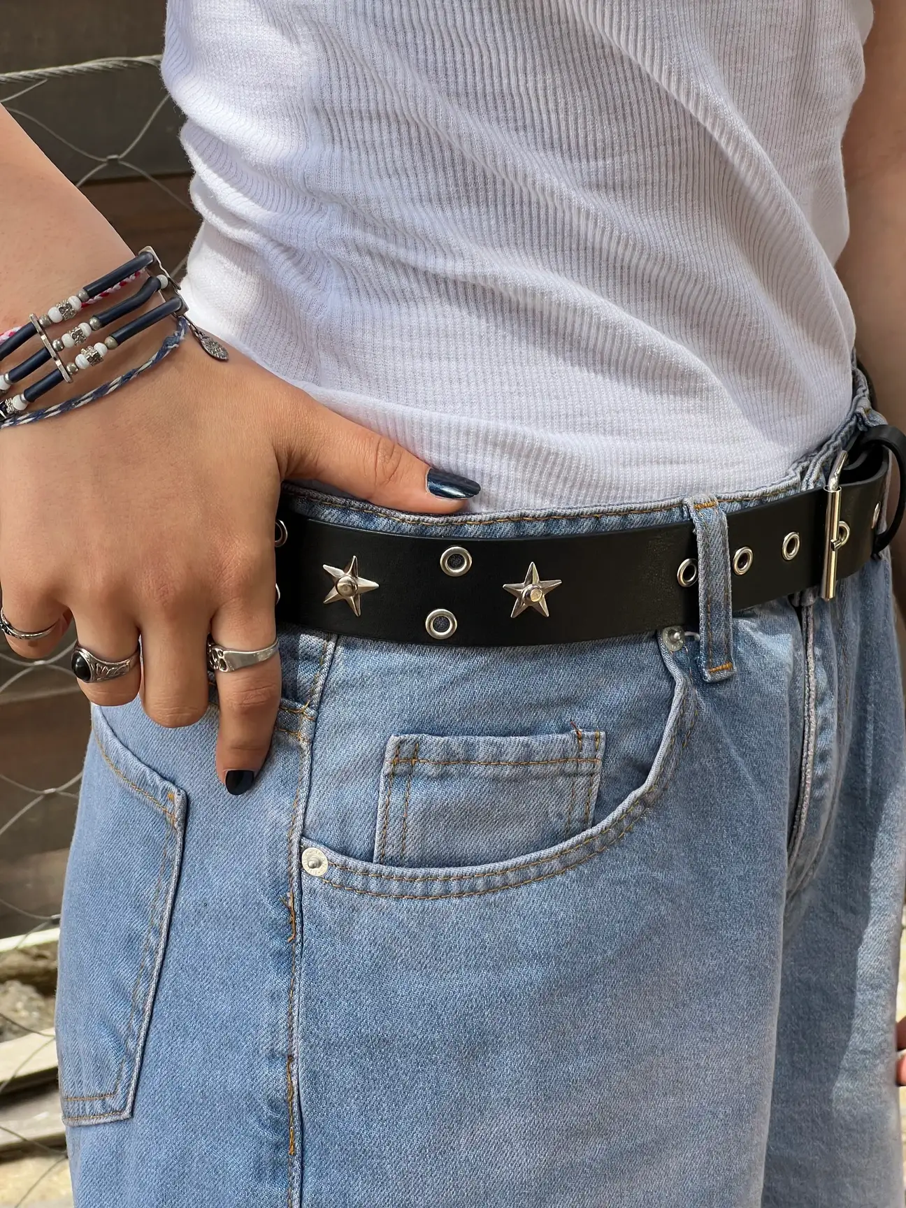 Siyah Yıldız Detaylı Kuş Gözlü Kemer