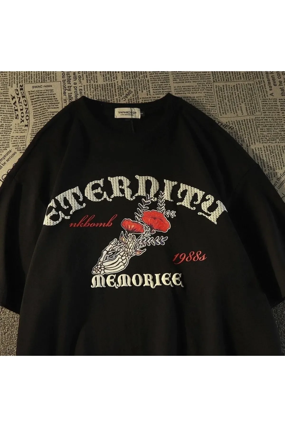 Beyaz Remember Kırmızı Taş Baskılı Oversize Unisex T-shirt