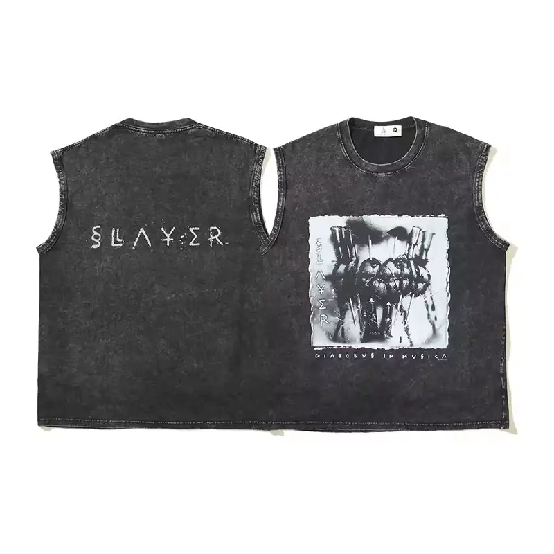 Slayer Baskılı Vintage Unisex Oversize Yıkamalı Atlet