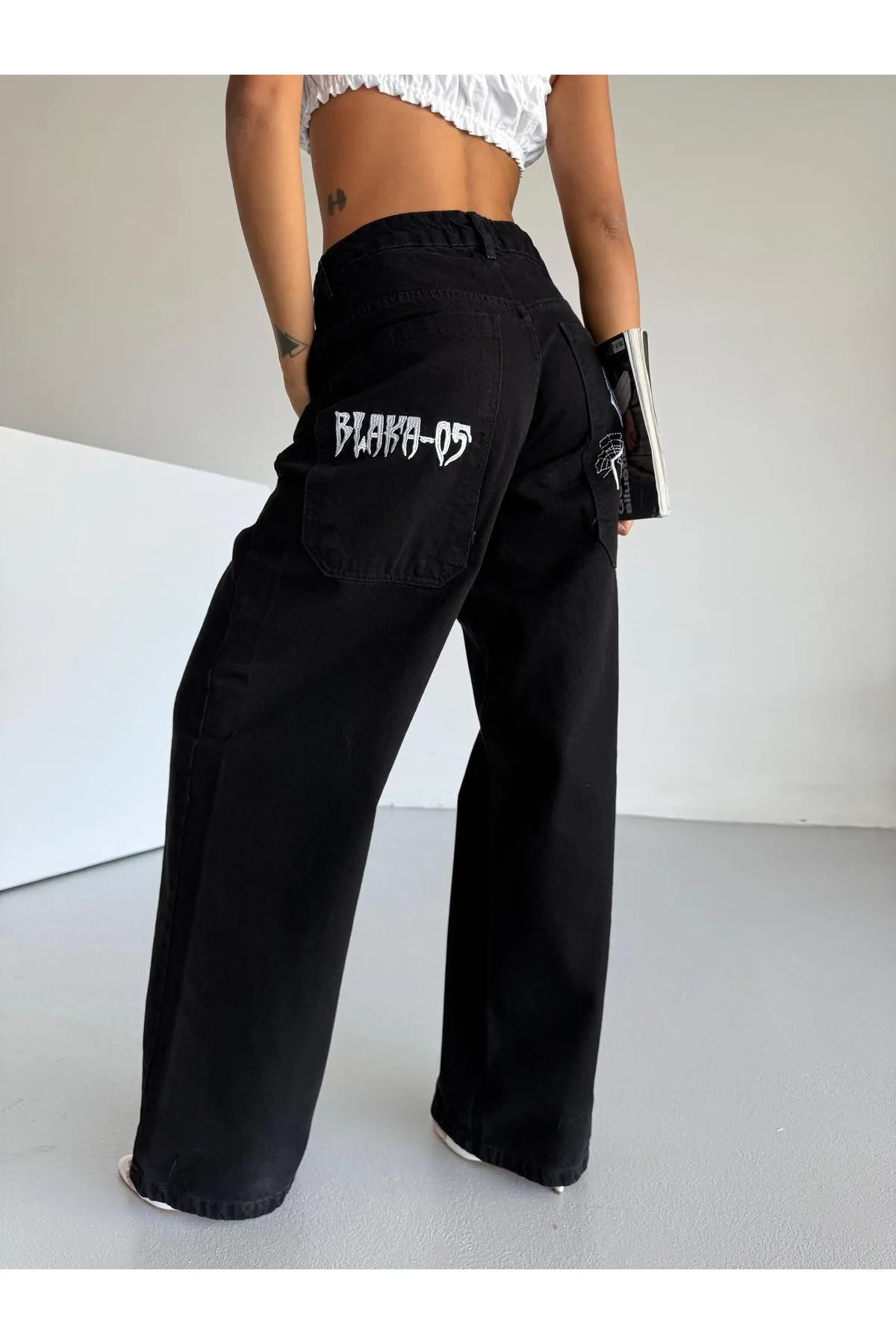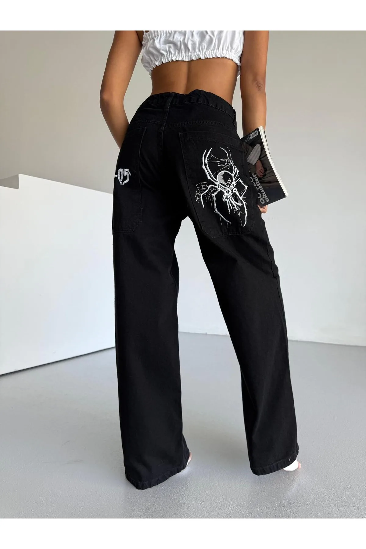 Sokak Stili Örümcek Nakışlı Baggy Unisex Pantolon