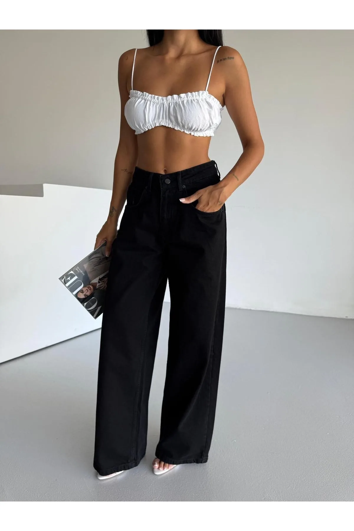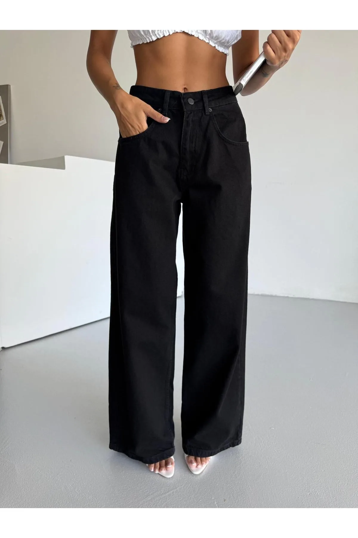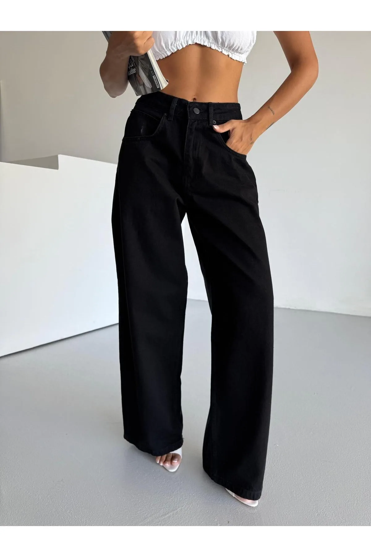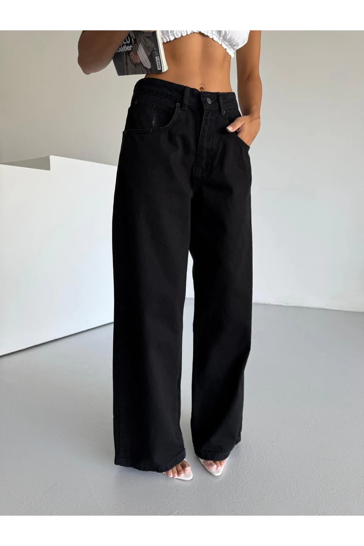 Siyah Yıkamalı Swd Nakışlı Şardonlu Eşofman Altı