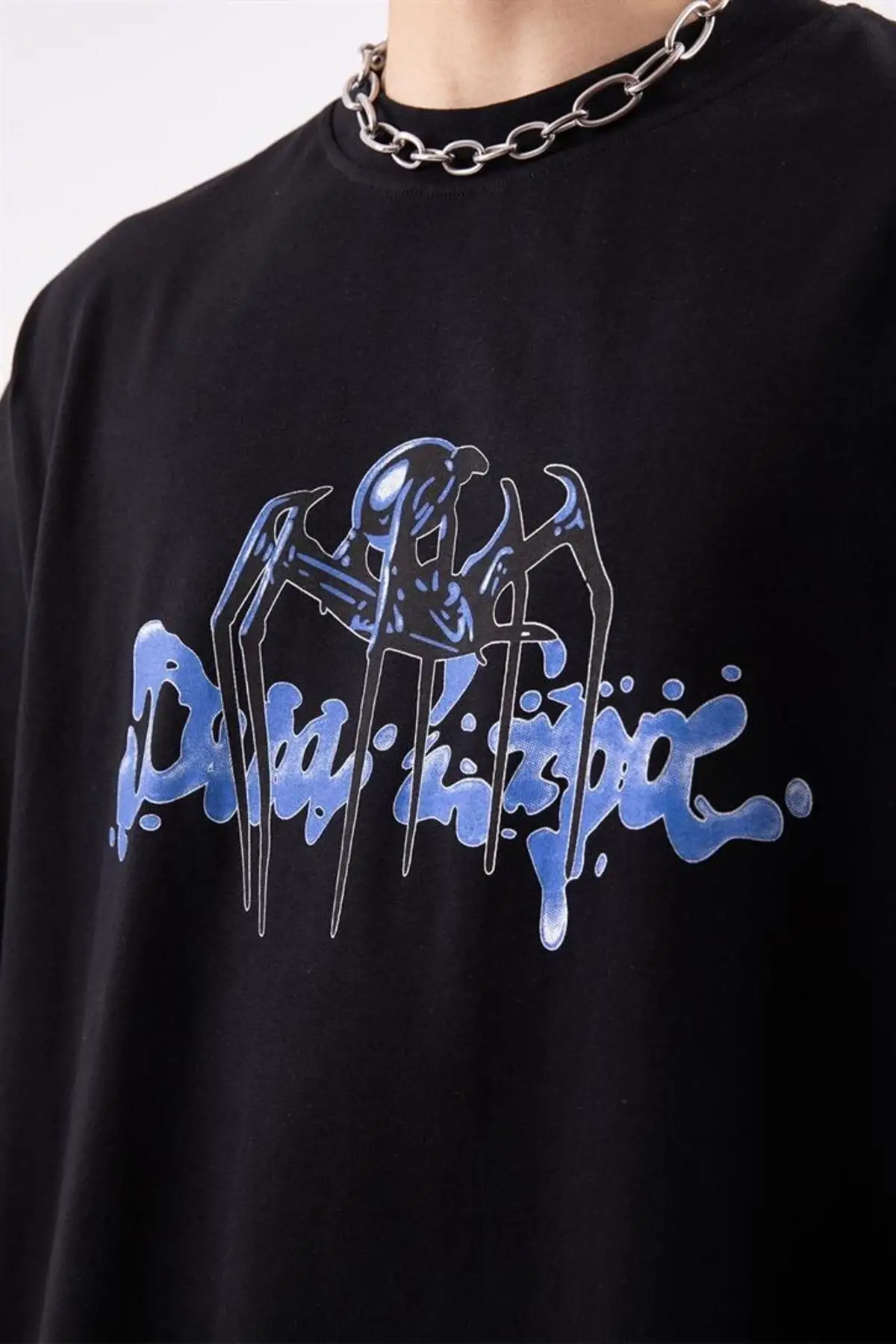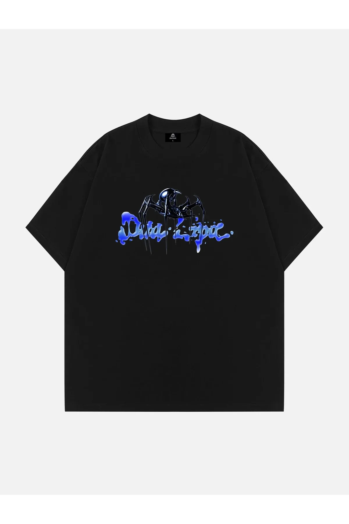 Beyaz Revenge Mavi Taş Baskılı Oversize Unisex T-shirt