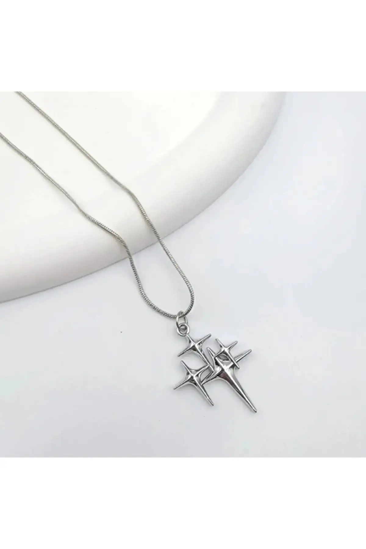3lü yıldız Silver Zincirli Kolye