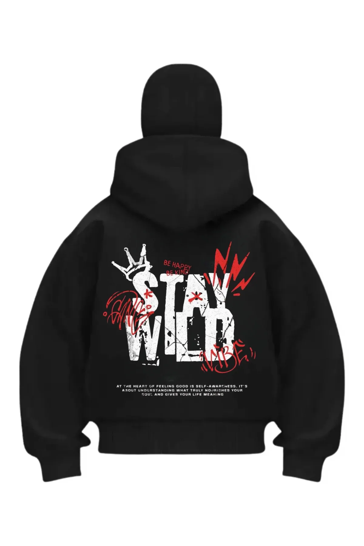 Stay Wild Baskılı Siyah Samuray Kar Maske Sweatshirt Hırka