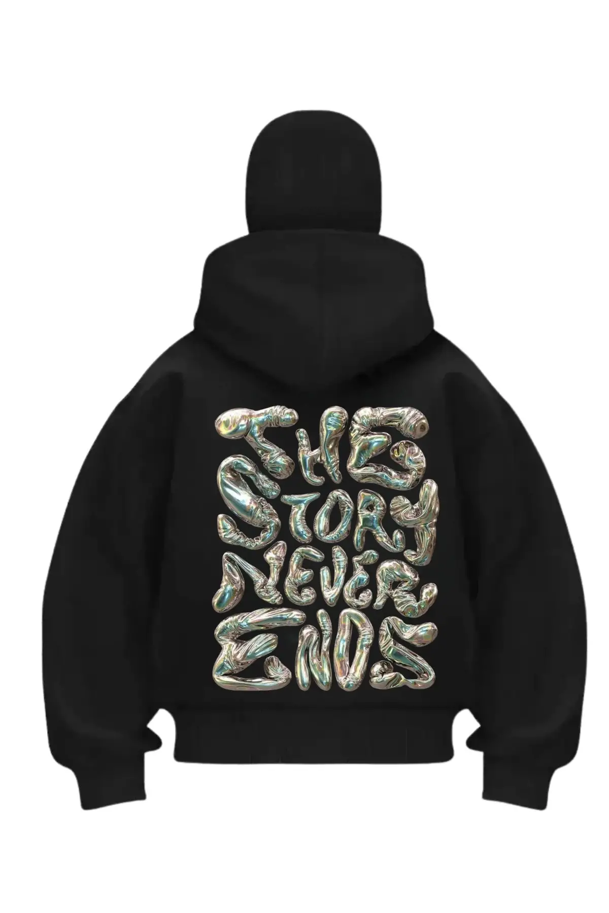 Story Never Baskılı Siyah Samuray Kar Maske Sweatshirt Hırka