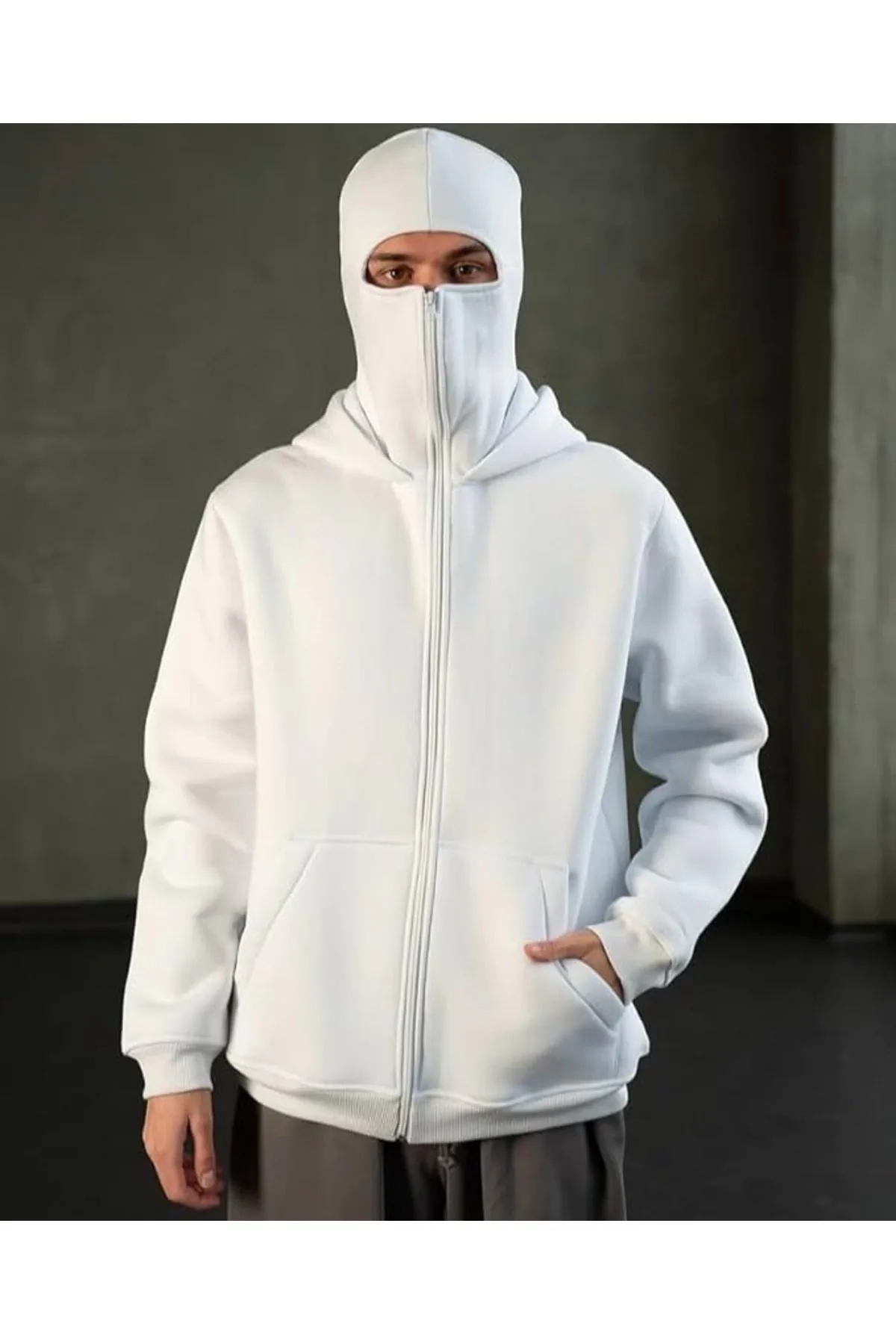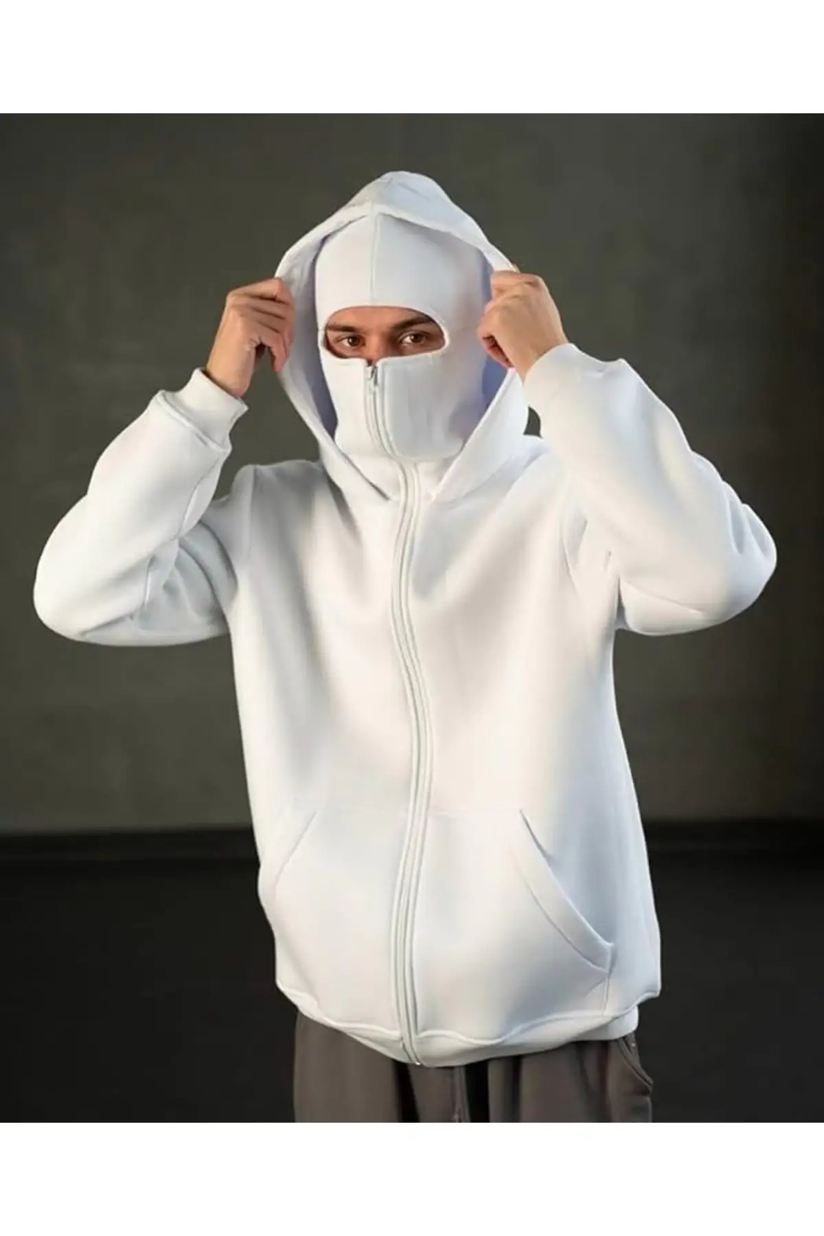 Beyaz Kar Maskeli Ninja Unisex Sweatshirt Hırka kalın polar