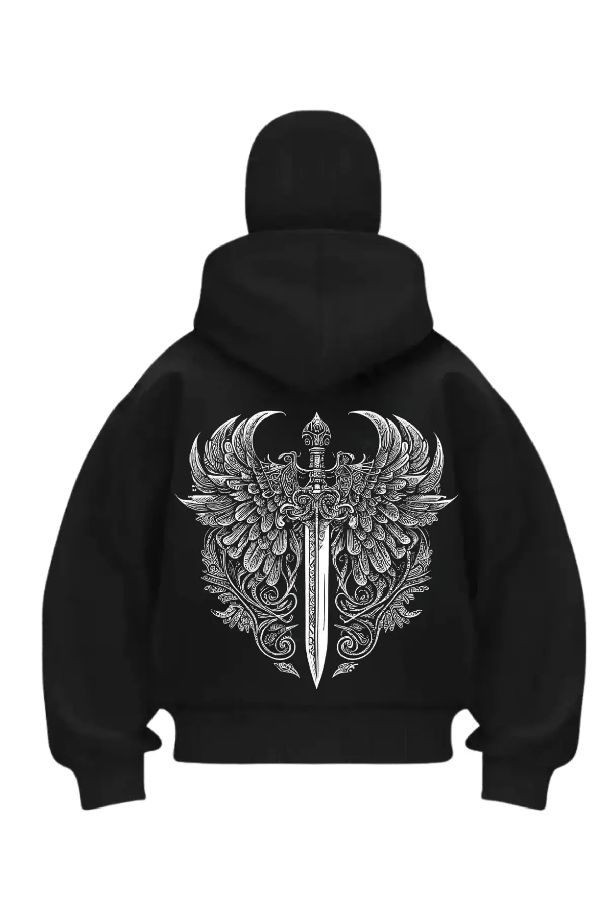 Sword Legend Baskılı Siyah Samuray Kar Maske Sweatshirt Hırka