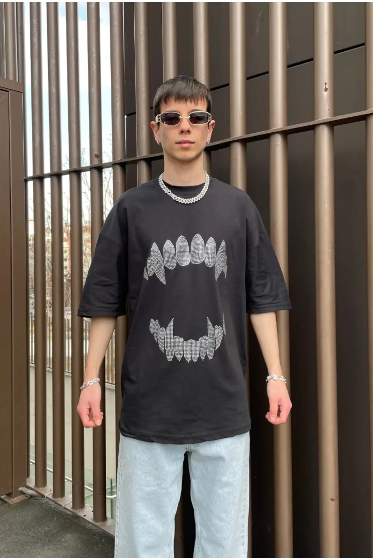 Beyaz Revenge Kırmızı Taş Baskılı Oversize Unisex T-shirt