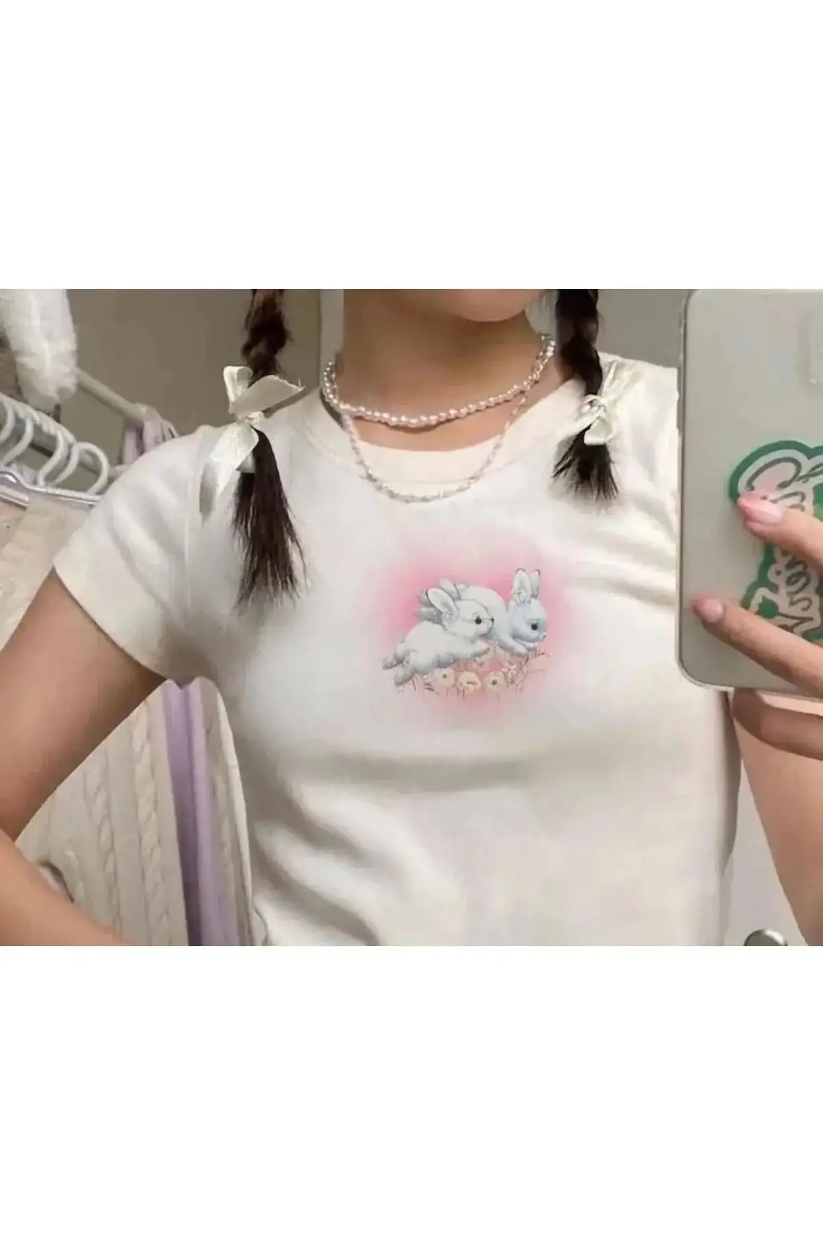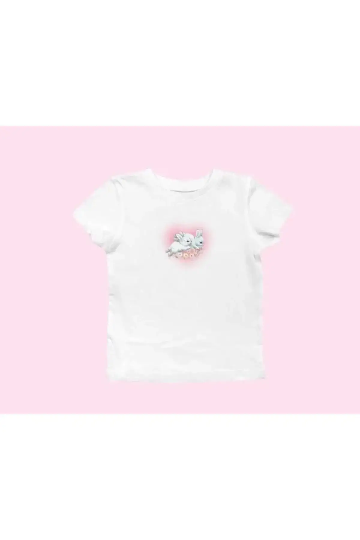 Tavşan Baskılı Rabbits Heart Baskılı Beyaz Crop