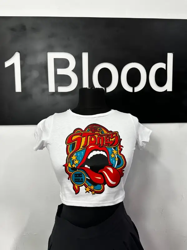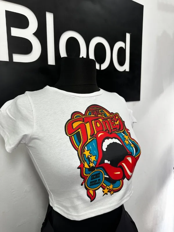 The Stones Baskılı Crop – Rock’n Roll Y2K Ruhuyla