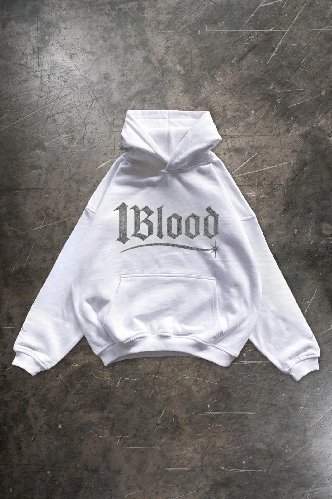 1Blood Beyaz Taş Baskılı Oversize Unisex Kapüşonlu Sweatshirt