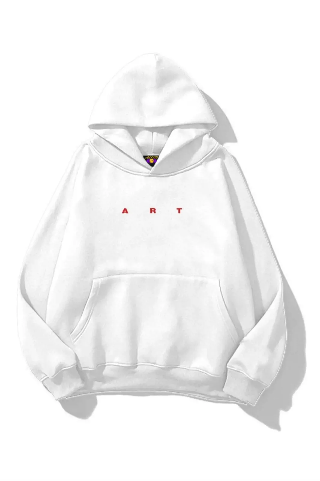 Beyaz Swd Kurdele Baskılı Oversize Kapüşonlu Sweat