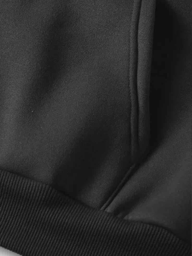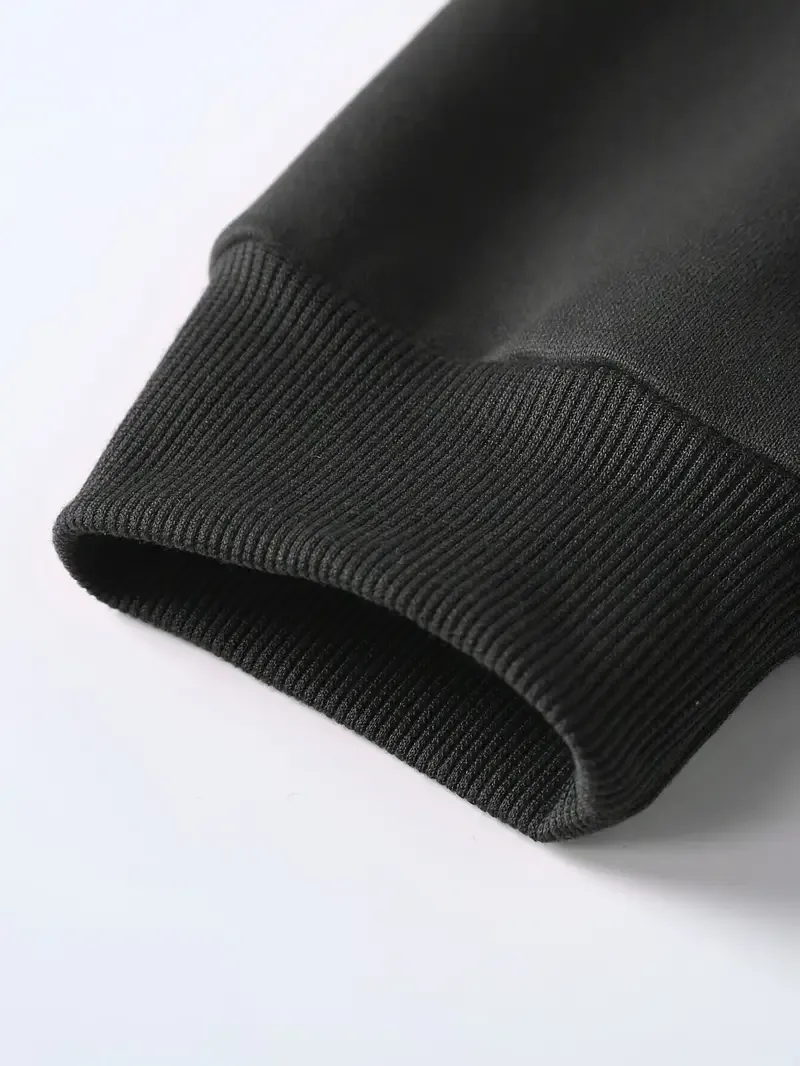 Minimal Nakışlı Siyah Bisiklet Yaka Kazak