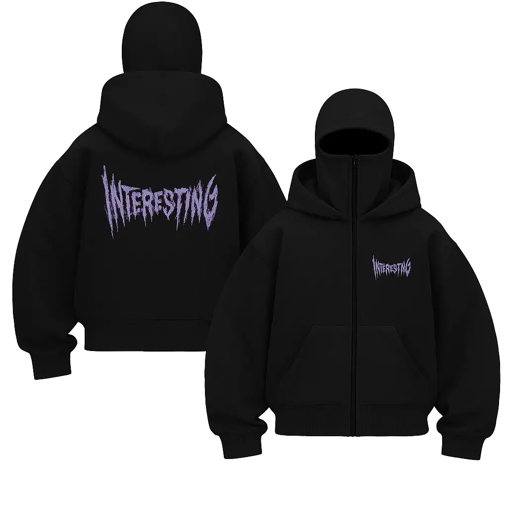 Unisex Oversize Siyah Interesting Baskılı Maskeli Hoodie
