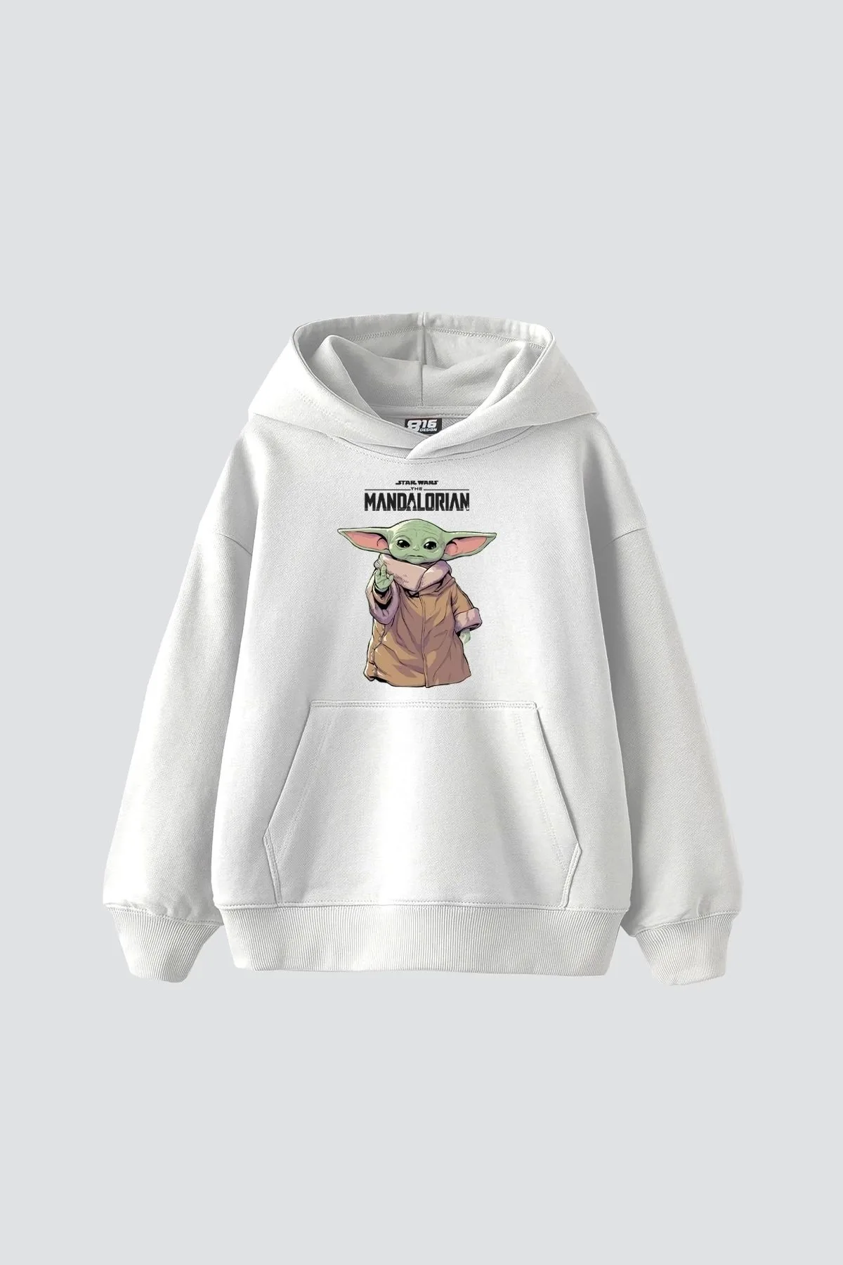 V2 The Mandalorian Yoda Baskılı Oversize Unisex Premium Beyaz Hoodie