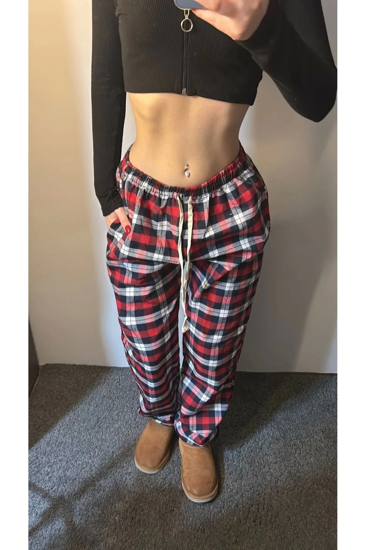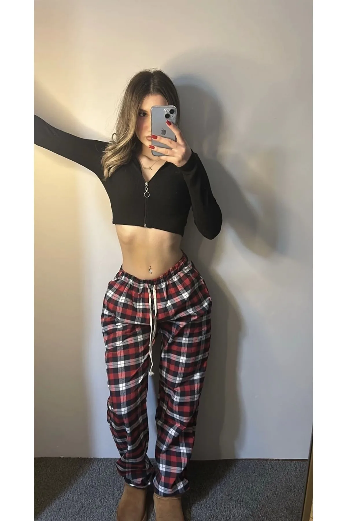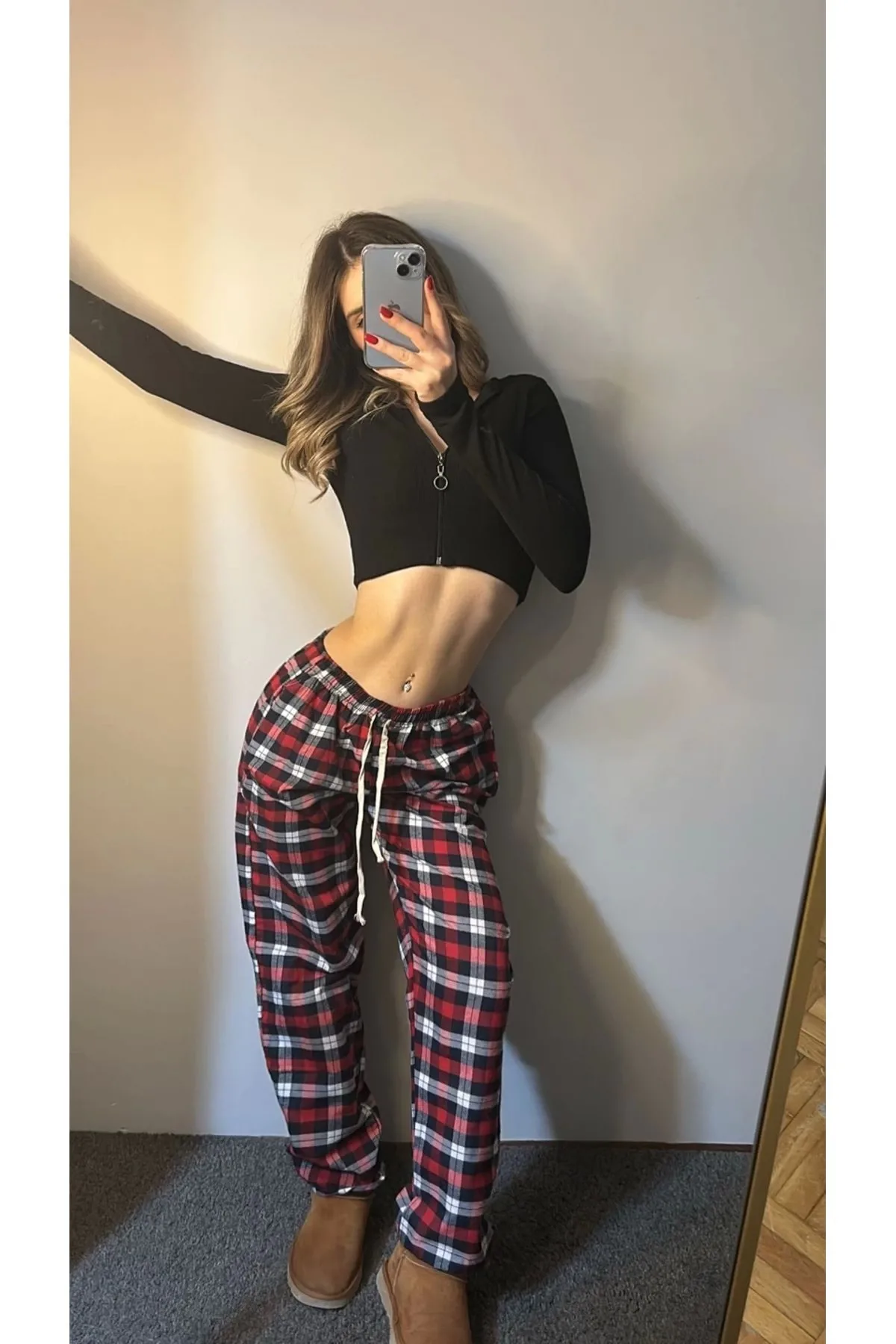 Kırmızı Siyah Kare Desenli Eşofman Altı